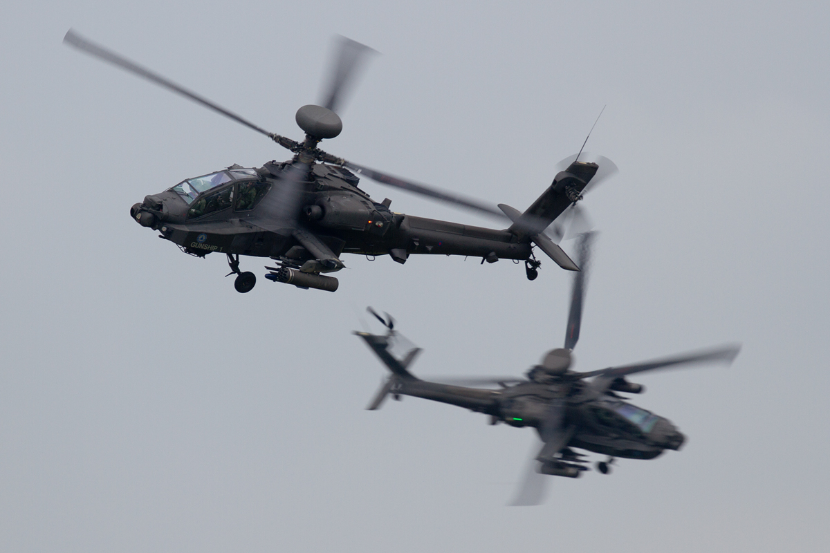 Helicopters were well represented in the Cosford flying display with each of the armed forces sending a rotary wing demonstration. Along with the SAR demo, the RAF provided the impressive Chinook solo display. Unfortunately, due to even more technical gremlins, the 18 Squadron anniversary aircraft was unserviceable at Northolt, where it had been present for an event the day before – and was replaced by a standard airframe flown in on the morning of the show. Nevertheless, the violent display brought with it lashings of blade slap and some genuinely incredible manoeuvres. The Royal Navy offered a comparatively tame Lynx HMA8 display, but its appearance was greatly appreciated as the Wildcat continues to replace the older Lynx airframes – the Army Air Corps Lynx AH7 is already formally withdrawn from service. However, the highlight of the helicopter displays was provided by the Army Air Corps in two WAH-64D Apaches AH1s. New for this year a second aircraft has been added giving an additional level of interest to an otherwise familiar role demonstration. The scenario was succinct and engaging and, perhaps most importantly, the use of pyrotechnics was liberal!