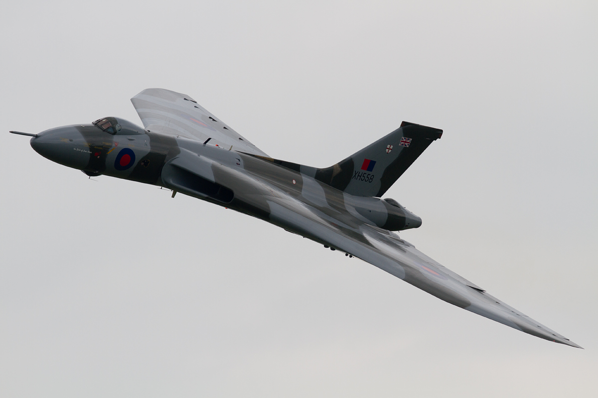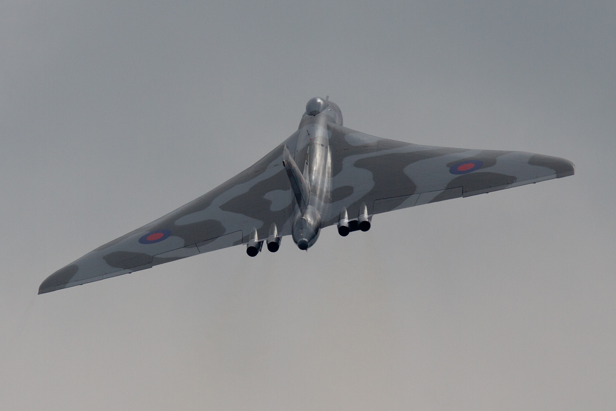 Cosford was also allocated flypasts from two of the RAF’s overworked, and therefore rarely seen, transport assets from RAF Brize Norton in the form of a C-130J Hercules and Voyager. Unfortunately the Hercules suffered technical problems at Brize Norton but the single flypast from the Voyager was most welcome. Adding to the complement of heavies was the ever popular Avro Vulcan in her final year of flying. The ‘Vulcan effect’ was obvious as people stopped what they were doing to admire the sleek delta winged bomber. The prolonged howl as Bill Ramsey and Martin Withers pulled the aircraft into the spiral climb was particularly ear-splitting and a fine reminder of what a tremendous achievement the last eight years have been.