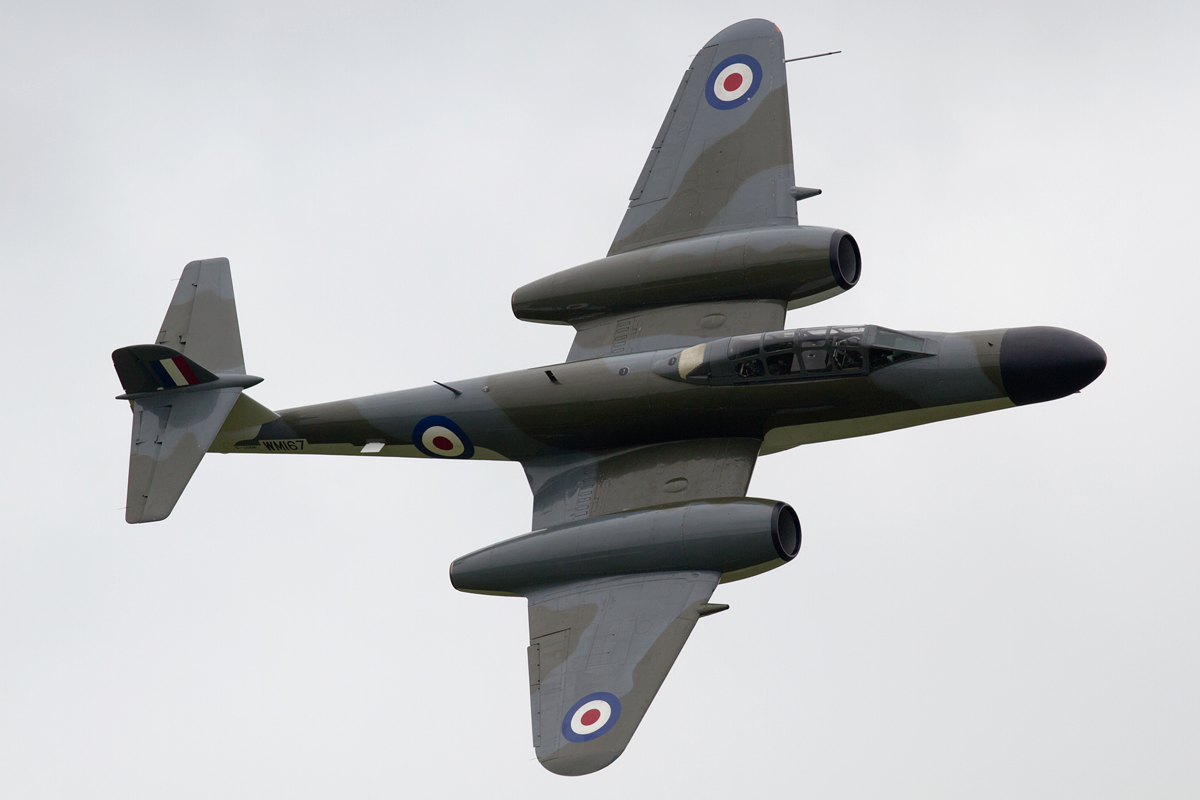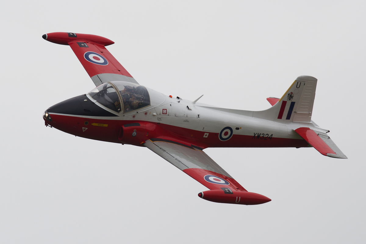 The aging Jaguars were not the only vintage jets on display at Cosford: the flying display featured a polished routine from the Classic Air Force’s Gloster Meteor NF11 WM167 in the hands of Jon Corley. Unfortunately the grey and green colour scheme of the night-fighter variant did not stand out against the milky grey sky, but the sheer number of topside passes more than made up for this – and it was again superb to see this night fighter model, which has been sidelined over the past few years for the recently restored Meteor T7 . More historic jet action came in the form of Jet Provost T.Mk.5 XW324 with Squadron Leader Dan Arlett providing an elegant display. Having not been previously announced prior to the show, the display was Cosford’s way of marking the memory of long term Flying Display Director Bill Hartree, who sadly passed away in November 2014. The display was a perfectly executed routine of graceful aerobatics that was a fitting tribute to a pivotal figure in the history of Cosford airshow.