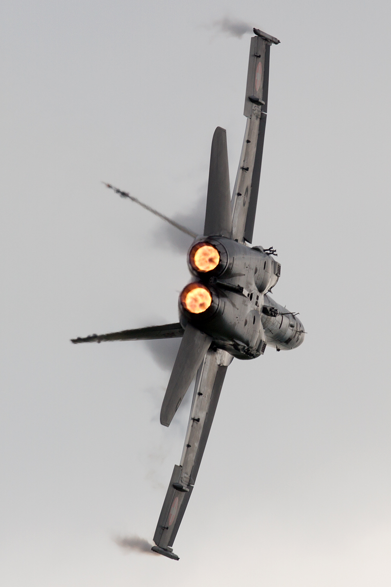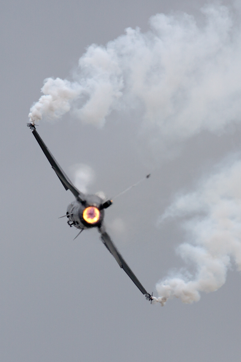 Despite the cancellations, modern fast jets were still well represented at Cosford. Following a rather relaxed opening by the RAF Falcons parachute display team, who began the show with a low altitude jump, a rather noisier display came in the form of the Belgian Air Force F-16AM Fighting Falcon solo display flown by Cdt Tom “Gizmo” De Moortel. Gizmo flew an impressive routine in the spare aircraft after a problem with the newly painted 2015 display jet (christened “Blizzard” – if you see it, you’ll know why!). To compound the bad luck, the spare then had an issue with its flare dispenser and so the loaded pyrotechnics couldn’t be released. Despite these setbacks, the display was well received and set the tone for the rest of the day. There were no such problems for Captain Julien “Teddy” Meister who expertly threw his Swiss Air Force F/A-18C around the sky squeezing every drop of vapour from the air. His display went on to win the new for Cosford Hartree memorial trophy for the most accurate, safe and polished flying display during the show.