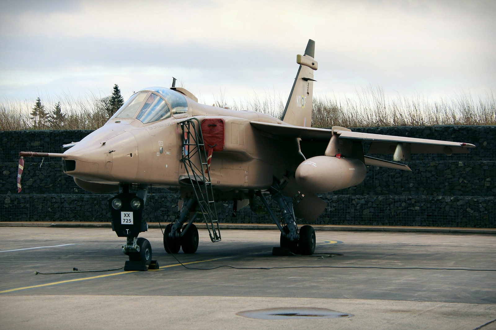 Following a very warm welcome from the Officer Commanding 238 Squadron, Squadron Leader Gaz Stevens, the attendees were soon left to their own devices – many stalking the sinking sun behind the waiting jets. With the VAAC Harrier T.4 and Raspberry Ripple Jaguar T.2A creating a ‘gateway’ of sorts, Jaguar GR3 XX119 in all of it’s spotty goodness was found pointing towards the star of the night, ‘Black Mike’. Flanked by one of Cosford’s gloss black Jaguar T.2s (another example being found squared away in Hangar 2 with the Sea Harrier FA.2) the all black line up was completed by a Hawk T.1 – the 208(R) Squadron marked jet which arrived from storage at RAF Shawbury at the end of February. XX833, the former QinetiQ twin-stick Jaguar, was next in line with the Airshow Office’s very own Harrier GR3, XZ991 behind it wearing its smart Artic wrap-around scheme and newly applied 1(F) Squadron markings. Representing the only non-fixed wing element of the night, Wessex HC.2 XR498 was positioned outside Hangar 1 – the type now wearing 22 Squadron markings having made its airshow debut last year. Drawing up the line-up were two more Jaguars – including XX725 wearing its GRANBY scheme with the added 238 Squadron Second World War code ‘KC-F’ – up at the far end of the shoot in Cosford’s DOTA or ‘Deployed Operational Training Area’.