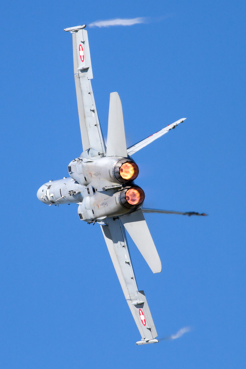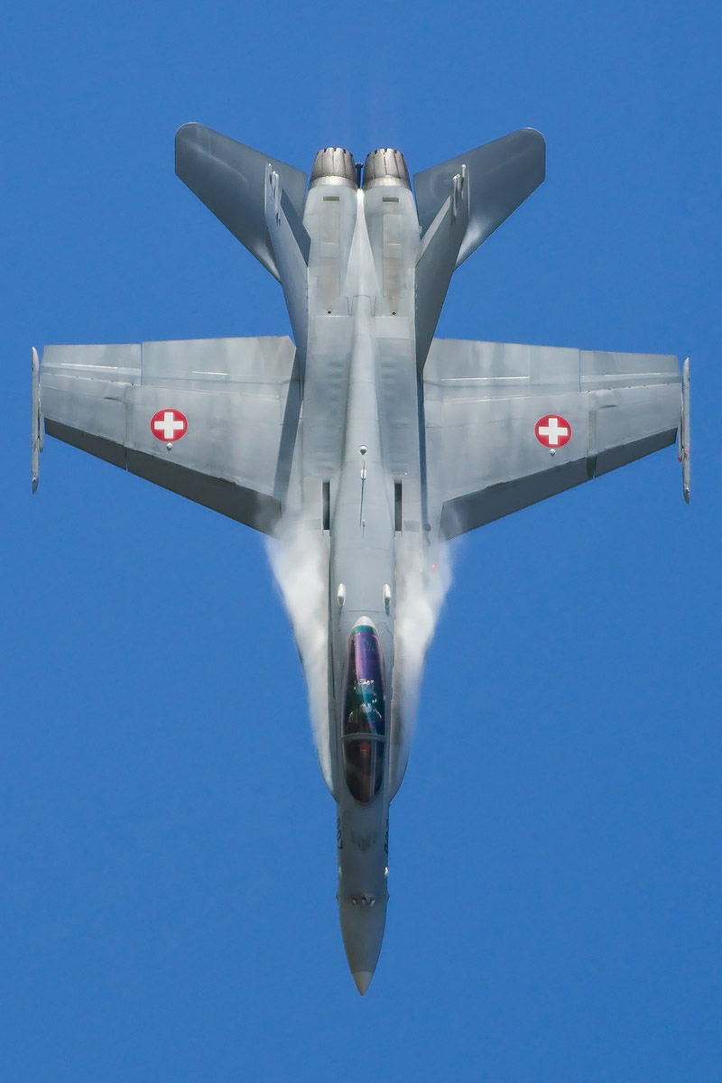 Displaying later in the afternoon was the Swiss Air Force F/A-18C Hornet, flown by Captain Julien “Teddy” Meister who returns as the Swiss Solo Hornet pilot having been appointed to the role for the 2014 season. Culdrose marks the second UK appearance of the Hornet, but the weather could not have been more different to the grey clag which blanketed Cosford Airshow in June. With unrestricted visibility and plenty of moisture in the humid sea air causing some impressive vortices to form on the Hornet’s large Leading Edge Root Extensions (LERX), Captain Meister’s display was certainly worthy of the award of overall best flying demonstration.