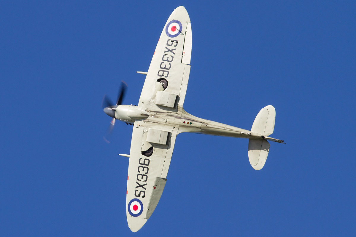 At the other end of the performance spectrum from the slow and leisurely Swordfish was the Kennet Aviation Seafire – itself also relatively recently returned to flight after a landing mishap in 2011. Flown by John Beattie the display, whilst not great for photographers, showed the performance of the type well, and the cream colours looked beautiful against the rich blue afternoon skies.