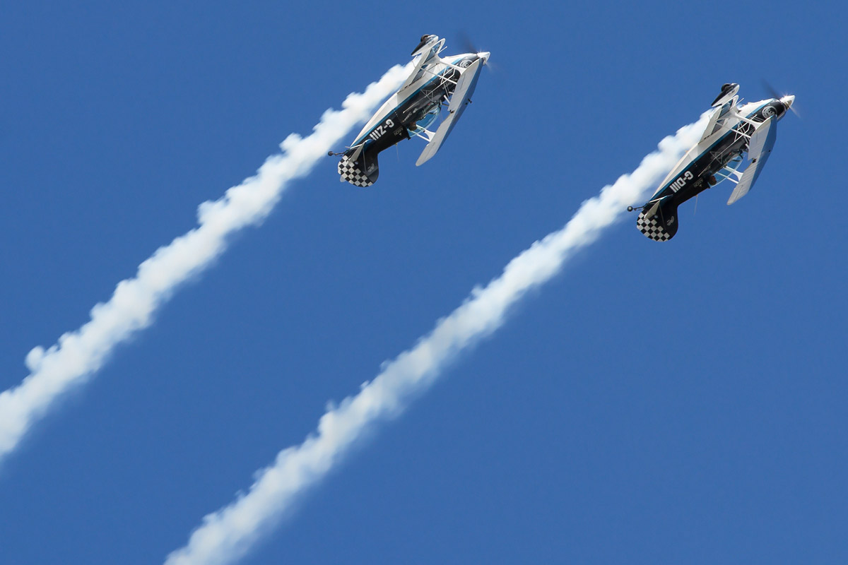 The Wildcat team were polished as ever with their two Pitts S-2Bs and were the team chosen to display first, flown by Al Coutts and Willie Cruickshank. Particularly impressive was the mirror pass, which seemed pleasingly close to the crowd and very well executed – as was the final topside pass (the wave to the crowd from the cockpit was a nice touch, and was definitely noticed).