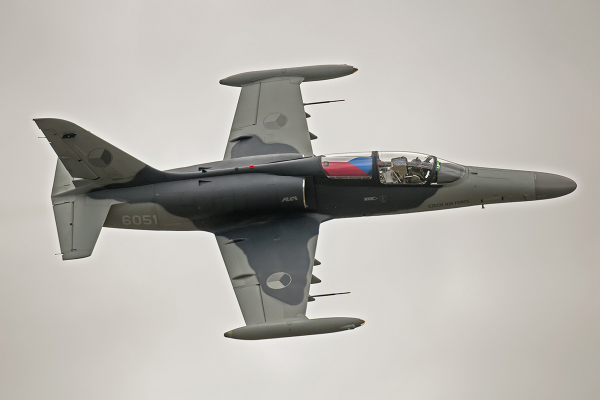 The Czech Air Forces single inclusion was an Aero Vodochody L-159 ALCA. The Advanced Light Combat Aircraft (ALCA) in its two tone grey scheme is a training aircraft of which the Czechs ordered 19 from Aero Vodochody. Flown immaculately as ever, the Czechs are now regular contributors at the Yeovilton Air Day.