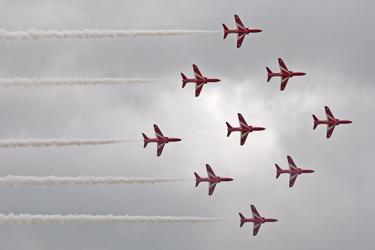 The Red Arrows have a new team leader this year with the Red 1 seat now occupied by Squadron Leader David Montenegro. This year’s Hawk aircraft sport another cracking tail design which make the aircraft stand out and their display in 2015 is as polished as ever. Due to the cloud cover, it was a rolling display that was performed at Yeovilton and included this years “new” move, the Whirlwind, in which all 9 aircraft perform a simultaneous roll.