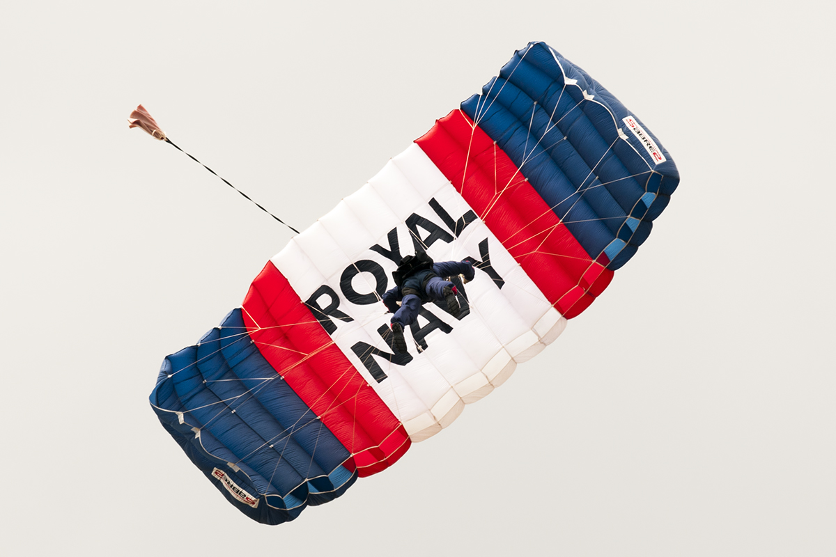 The Royal Navy Parachute display team was next to perform dropping into the airfield from Shorts Skyvan G-PIGY (which was also used for a photo shoot with the “V-Jet” formation) and landing on their marks with exemplary accuracy.