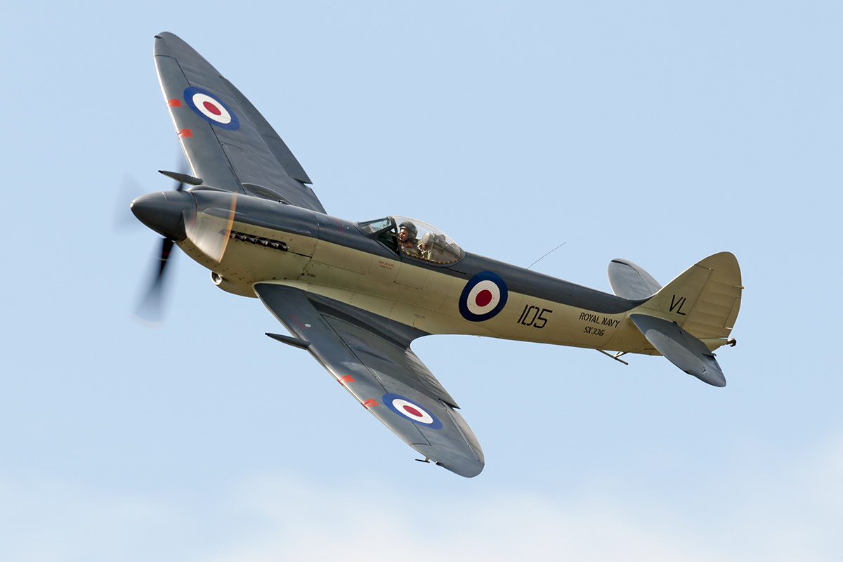 The Naval theme continued straight after with Lt Cdr Chris Gotke AFC flying Kennett Aviation’s Seafire F.XVII SX336/G-KASX around the Somerset countryside with style and panache. The air-craft is resplendent in her naval colour scheme – and is a treasured asset with only four flying examples in the world today, with two in the UK and two in the USA (N47SF and N503PR).