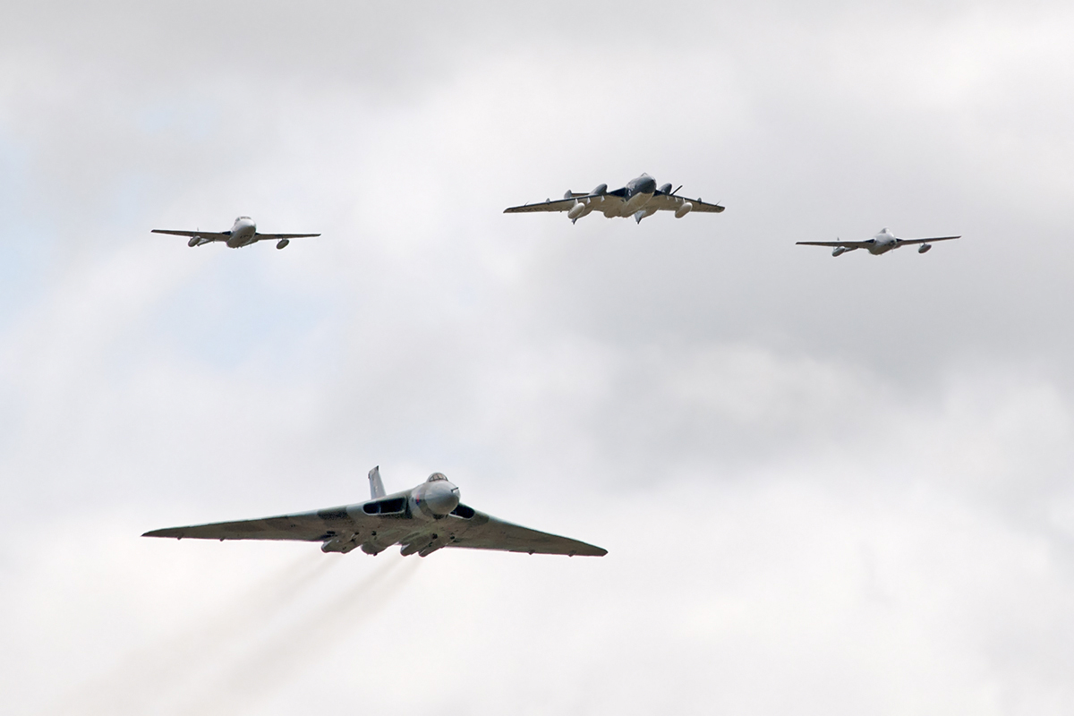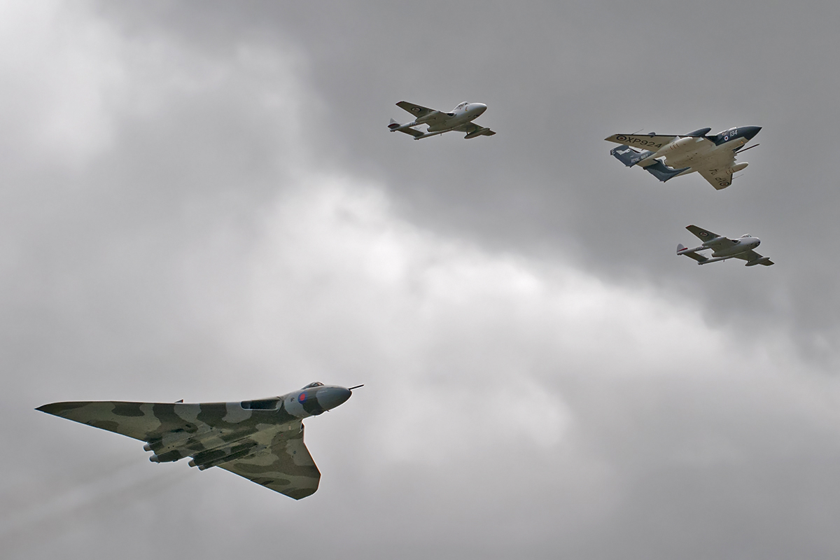 What followed was a unique jaw dropping once in a lifetime “V-Jet” formation featuring Avro Vulcan XH558, both Norwegian Air Force Historic Flight Vampires and the Fly Navy Heritage Trust’s Sea Vixen. This was an experience that is unlikely to be repeated due to the retirement of the Vulcan at the end of this year’s display season, and it will live long in the mind, perhaps even surpassing the 2014 formation of both Lancasters, which in itself was a truly emotional and breathtaking sight.
