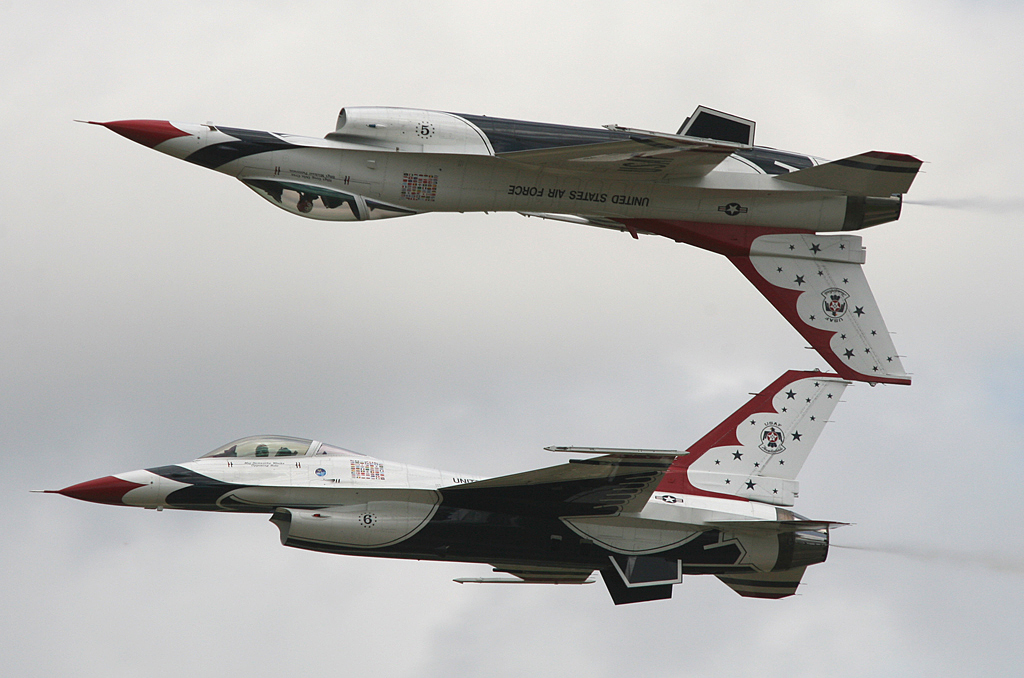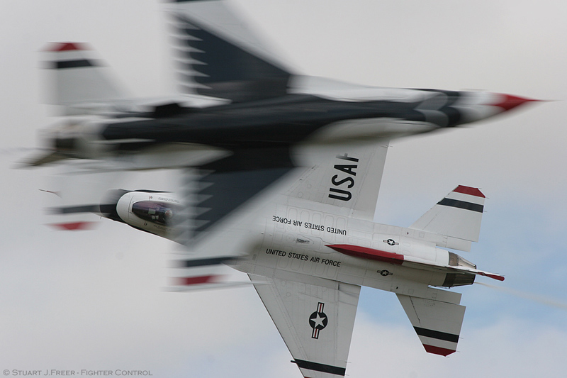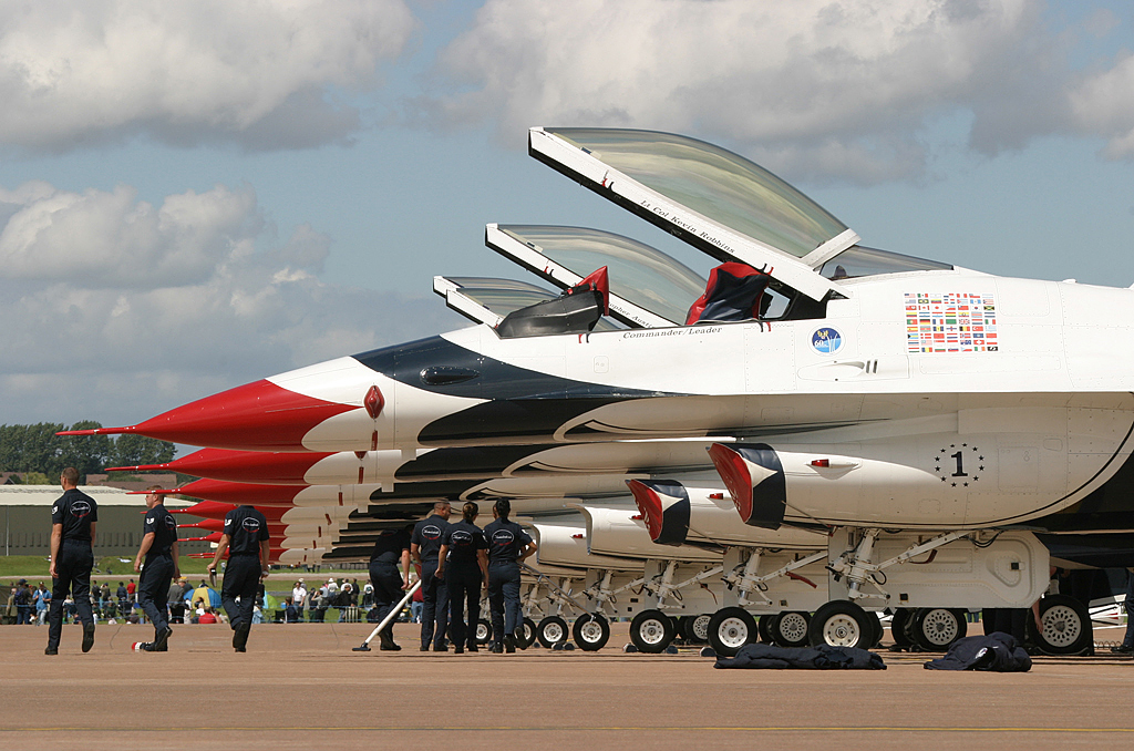 No doubt about it (from the aviation enthusiast viewpoint), love them or hate them, the ‘Thunderbirds’ demonstration team stole the show. To the strains of heavy rock music emanating from, what must be the worlds largest mobile sound system, the team was simply breath taking. Cavorting over the Gloucestershire countryside to a medley of high powered rock numbers by the likes of AC/DC and Limp Biscuit just seemed to typify the close connection that Rock music seems to have with the USAF.