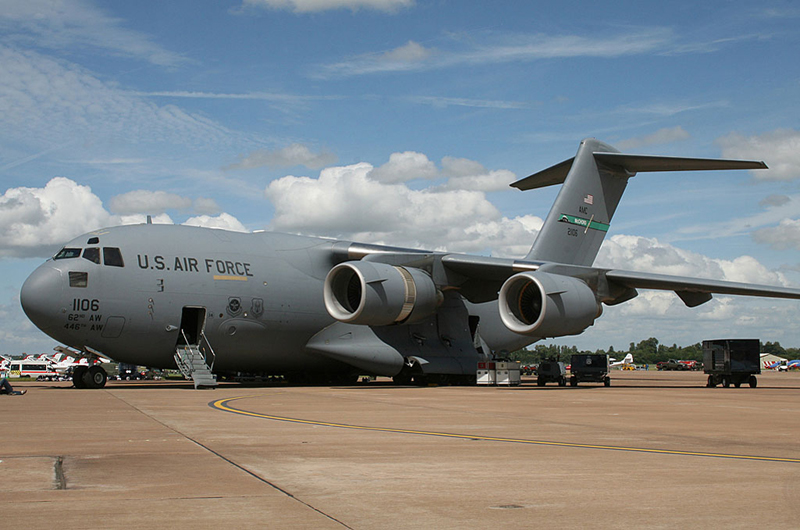 Formed in 1953, the Thunderbirds are based at Nellis Air Force Base in Nevada and are unusual in having two female pilots, namely, Major Nicole Malachowski (Right wing position) and Captain Samantha Weeks (Opposing Solo position). The prestigious number 1 slot is flown by the team Commander Lt Col Kevin Robbins. The team took up the whole of one ramp area and security was very tight. On our media tour of the ramp, we had to keep a safe distance from the jets. Of interest was one of the support C-17A Globemaster aircraft which wore its own team number ‘14′ to the right hand side of the crew entrance.
