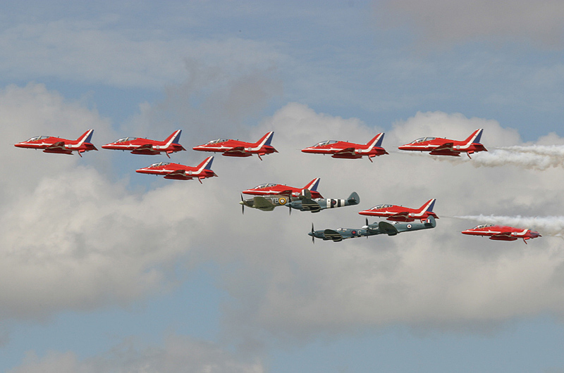 The Battle of Britain Memorial Flight celebrates its 50th anniversary this year and this provided a wonderful opportunity for them to fly in formation with the Red Arrows aerobatic team.