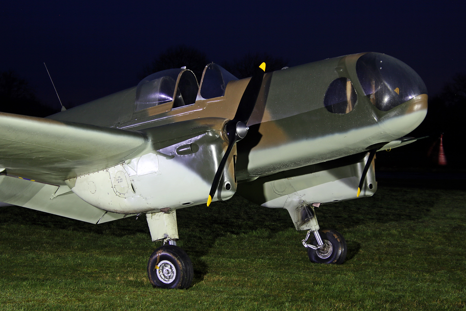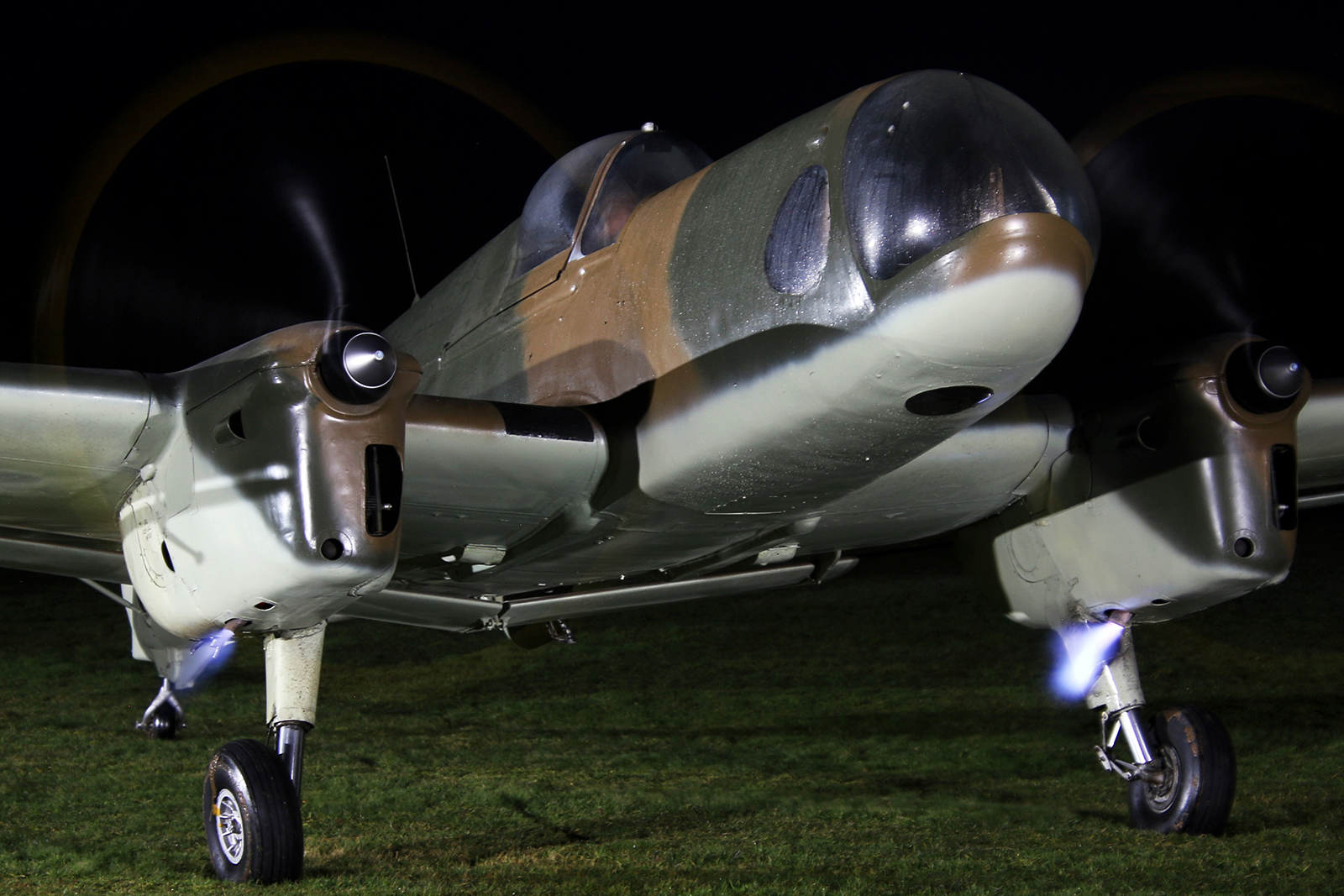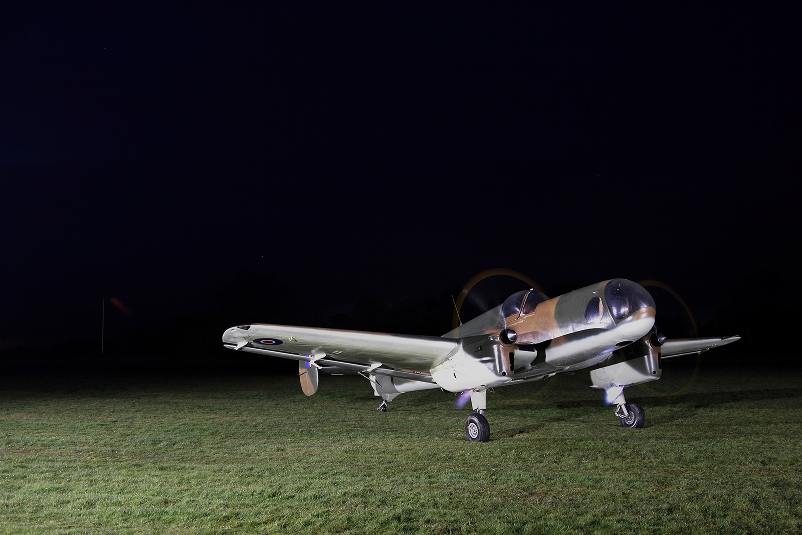Like the afternoon session, the evening session saw a number of engine runs, the Norvigie and Helio running up again with the Argus, Auster AOP.9, Focke-Wulf and ‘Bobsleigh’ joining them – the latter running twice, once during the dingy Northamptonshire twilight and later when it was dark. As can be imagined, with many having made the journey solely for R.S.4 there was a slight but understandable ‘humph’ in the air when word was passed that the aeroplane had decided it didn’t want to start in the morning when the crew had tried – despite trying for over an hour to coax the Gypsy Majors into life. Thankfully, the aeroplane burst into life after just a couple of attempts and to give the ‘fire spitting’ Norvigie a run for its money with its own bursts of flame from its exhausts.