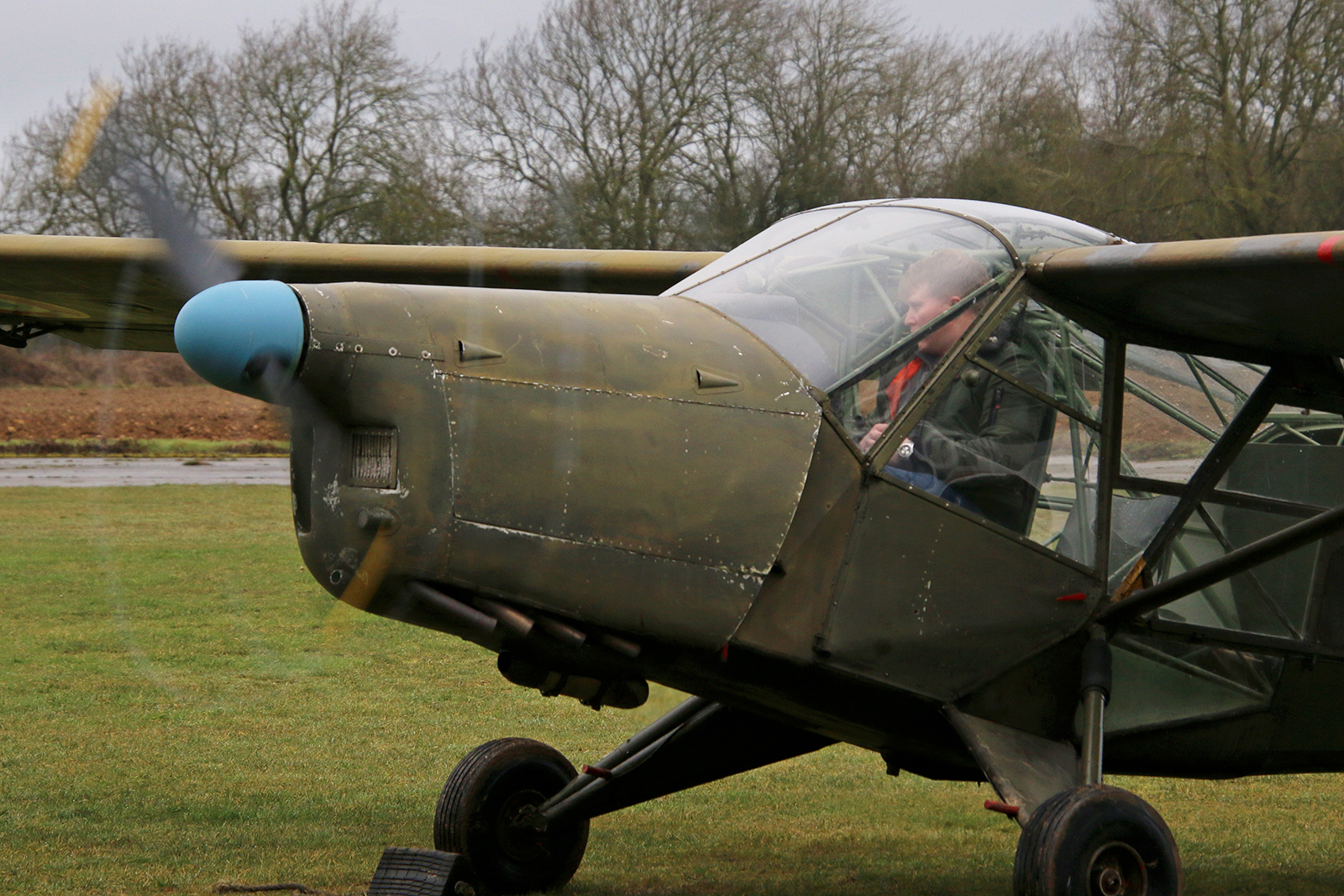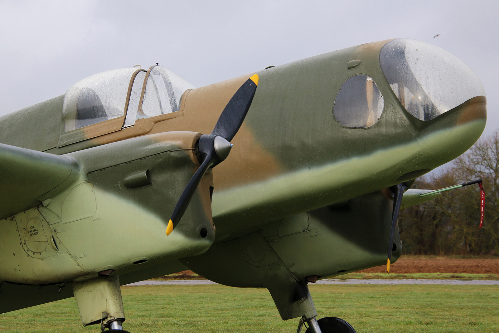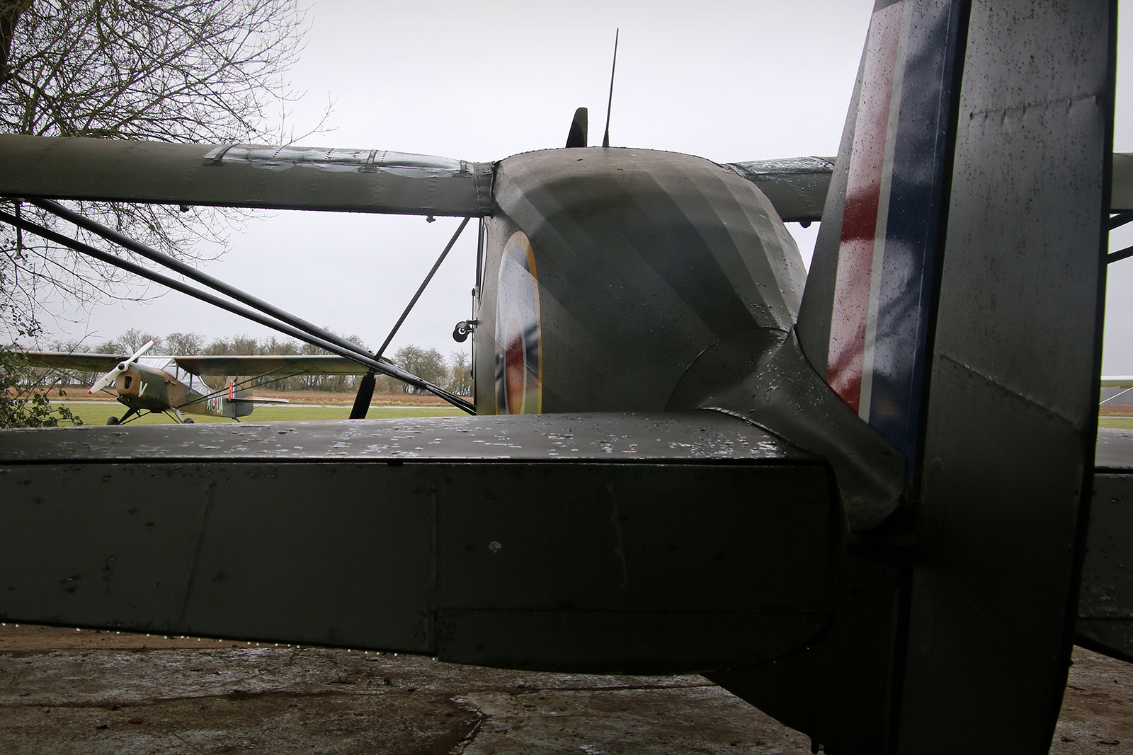 With the day’s aircraft line up sitting on the grass next to Spanhoe’s sole runway, it was the aeroplane at the head of it that had almost immediate attention – those arriving whipping phones and cameras out to ‘bag’ that first shot of the R.S.4. Wearing a faux-pax camouflage scheme it picked up while with the world-renowned Strathallan Aircraft Collection, the story of how this near- apocryphal flying machine ended up at Spanhoe is worthy of an article in itself – in fact with its re-emergence some of the R.S.4’s story is just coming to light. That story begins back with the R.S.1 Snargasher way back in 1939 and ends with the aeroplane now nearing its first flight in nearly 40 years. In between, the story includes the development of the ungainly named R.S.1 by Reid and Sigrits’ boffins, leading to the elegant looking R.S.3 ‘Desford Trainer’, which in turn became the basis for the R.S.4. Radical development to undertake prone position pilot trials led to spells with the Royal Navy and Farnborough’s Royal Aircraft Establishment (RAE) for said trials wearing the serial VZ7281. Following service with RAE, the R.S.4 passed through the hands of numerous civilian owners (as G-AGOS) and had a number of uses – including an air courier and aerial survey work with Kemps Aerial Surveys out of Eastleigh Aerodrome. A closer look at the aeroplane shows flecks of its original silver scheme breaking through. The story even includes the first ever aircraft auction by Christies, and time spent with the incredibly short-lived Scottish Aircraft Collection Trust. Unbelievably, the R.S.4 even spent a number of years stored in the miner’s washroom of the former Snibston Colliery it would go on to call home, finding ownership with Leicestershire County Council (LCC), to whom it belongs to this day. Unlike some owners that squander their ‘one and only’ example away out of sight or in the corner of a museum collecting dust, LCC have entrusted Windmill Aviation with the R.S.4’s restoration to flight under the leadership of Auster maestro Carl Tyers. Nevertheless, as I say, the story deserves an article of its own.