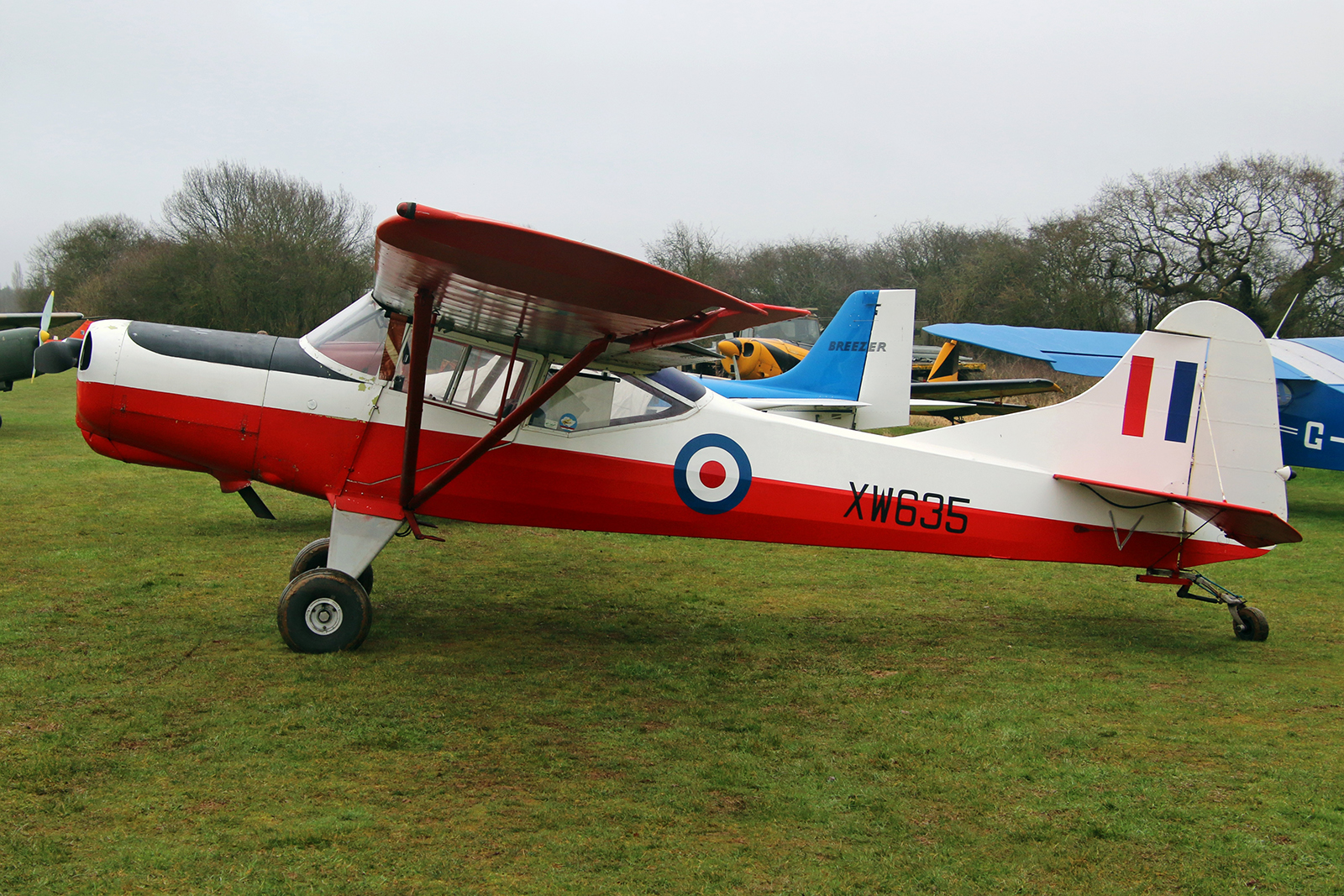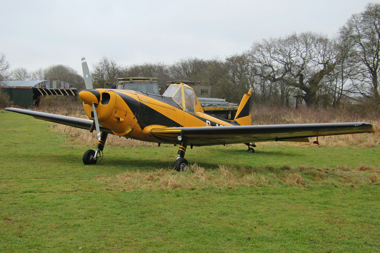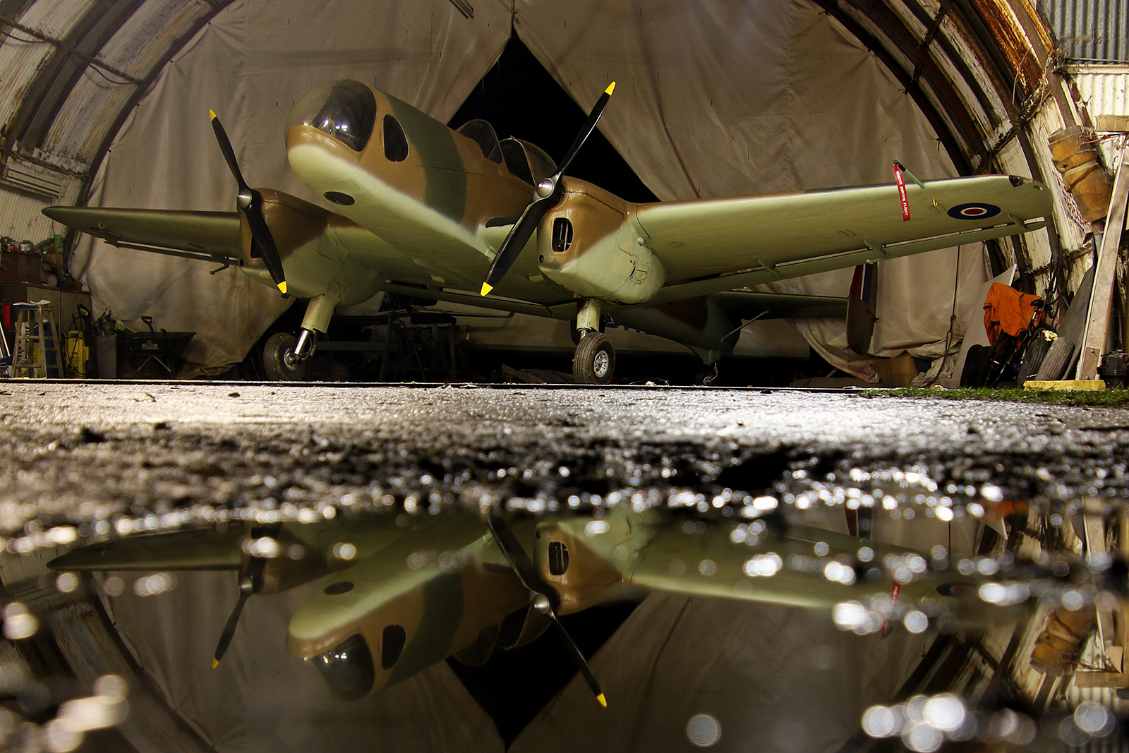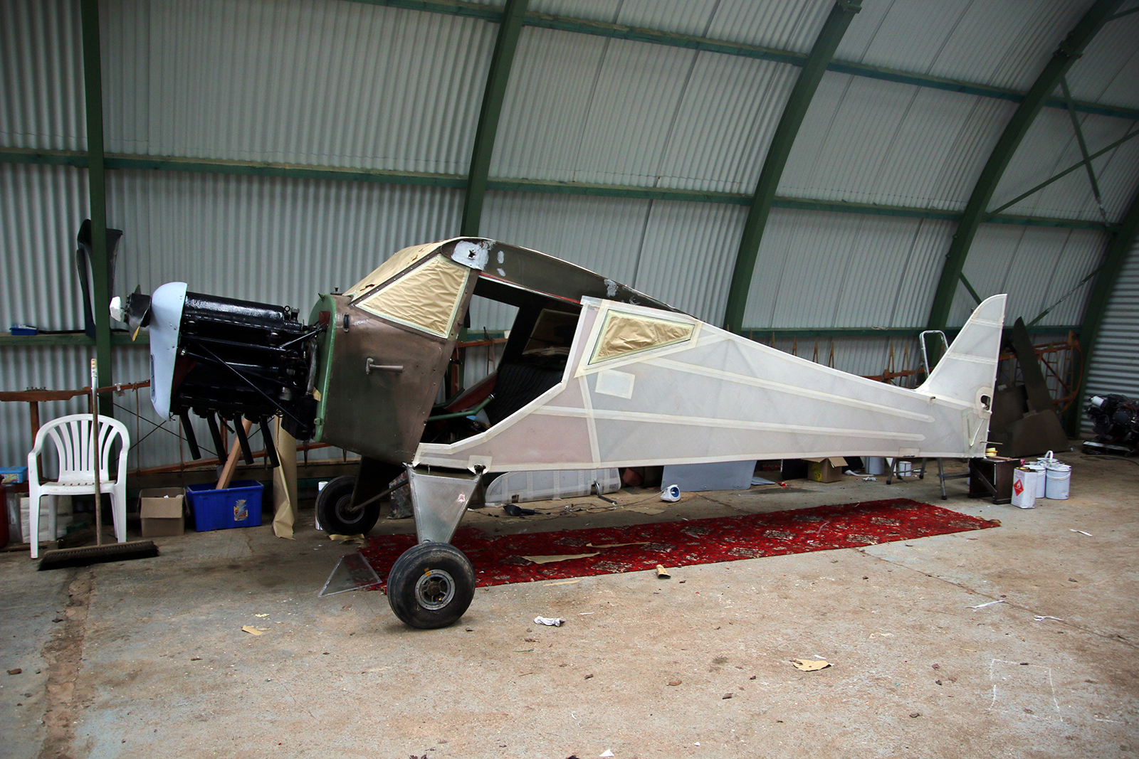 With the day’s aircraft line up sitting on the grass next to Spanhoe’s sole runway, it was the aeroplane at the head of it that had almost immediate attention – those arriving whipping phones and cameras out to ‘bag’ that first shot of the R.S.4. Wearing a faux-pax camouflage scheme it picked up while with the world-renowned Strathallan Aircraft Collection, the story of how this near- apocryphal flying machine ended up at Spanhoe is worthy of an article in itself – in fact with its re-emergence some of the R.S.4’s story is just coming to light. That story begins back with the R.S.1 Snargasher way back in 1939 and ends with the aeroplane now nearing its first flight in nearly 40 years. In between, the story includes the development of the ungainly named R.S.1 by Reid and Sigrits’ boffins, leading to the elegant looking R.S.3 ‘Desford Trainer’, which in turn became the basis for the R.S.4. Radical development to undertake prone position pilot trials led to spells with the Royal Navy and Farnborough’s Royal Aircraft Establishment (RAE) for said trials wearing the serial VZ7281. Following service with RAE, the R.S.4 passed through the hands of numerous civilian owners (as G-AGOS) and had a number of uses – including an air courier and aerial survey work with Kemps Aerial Surveys out of Eastleigh Aerodrome. A closer look at the aeroplane shows flecks of its original silver scheme breaking through. The story even includes the first ever aircraft auction by Christies, and time spent with the incredibly short-lived Scottish Aircraft Collection Trust. Unbelievably, the R.S.4 even spent a number of years stored in the miner’s washroom of the former Snibston Colliery it would go on to call home, finding ownership with Leicestershire County Council (LCC), to whom it belongs to this day. Unlike some owners that squander their ‘one and only’ example away out of sight or in the corner of a museum collecting dust, LCC have entrusted Windmill Aviation with the R.S.4’s restoration to flight under the leadership of Auster maestro Carl Tyers. Nevertheless, as I say, the story deserves an article of its own.