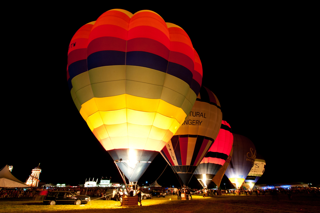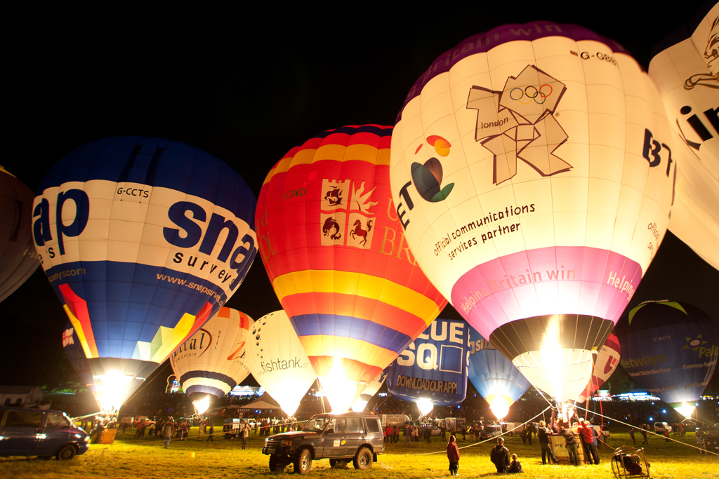 The most popular attraction of the event has always been the two spectacular nightglows. Up to 30 balloons light up the skies around the venue in perfect synchronization to dramatic music. The two displays were this year choreographed by Dave Groombridge and Ian Martin – both Dave and Ian carried out months of preparation ensuring the perfect tracks were selected for each of their themes.