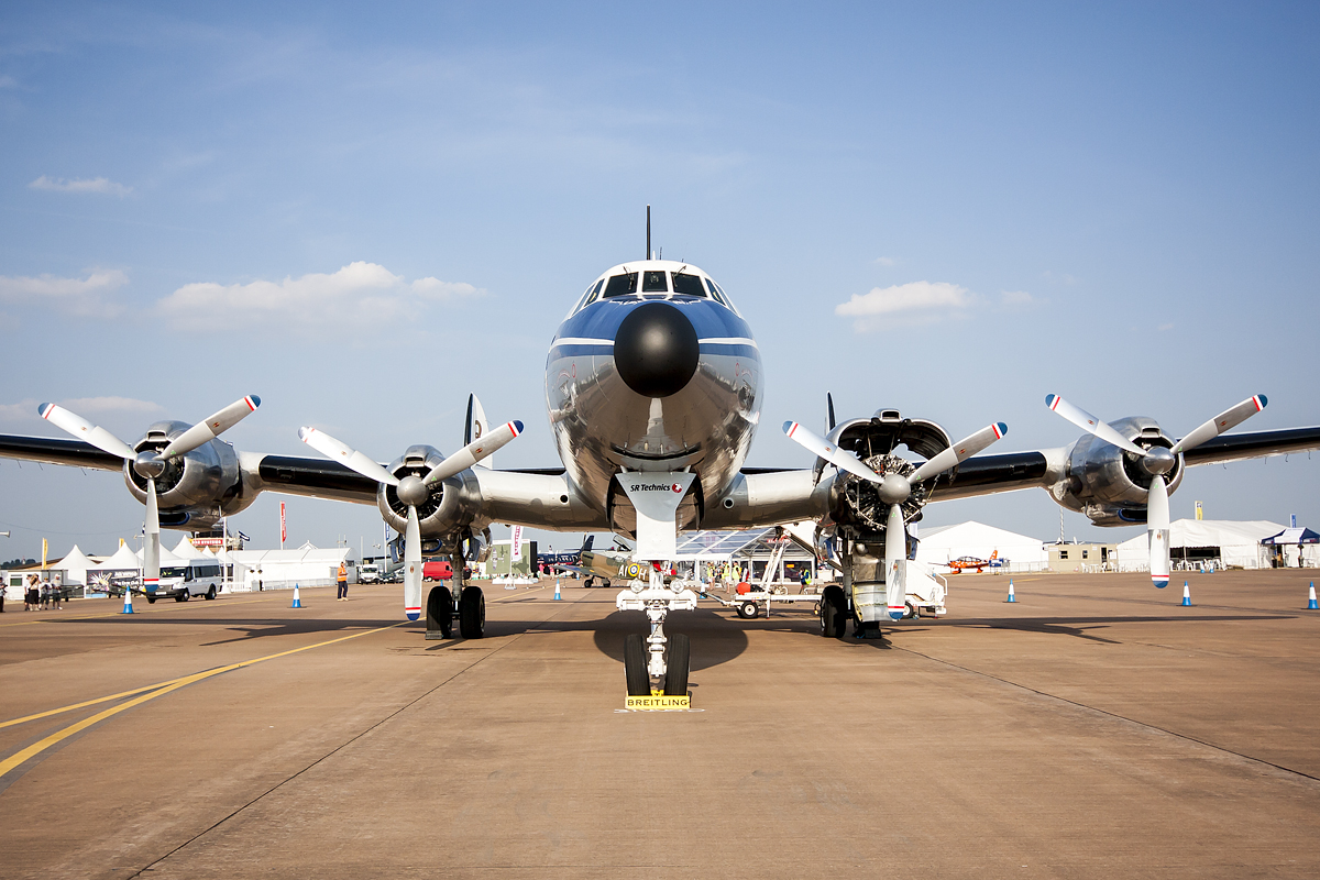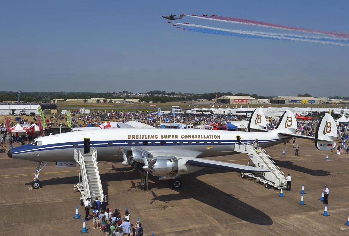 Based in Switzerland the Breitling Super Constellation is one of only two airworthy aircraft of its type. Designed by one of the greatest aerospace innovators Kelly Johnson, the Constellation made its name as a luxury commercial airliner and later a military transport aircraft during World War II. The sound of its four piston engines taxiing off the runway was a wonderful noise for the enthusiasts, who were awaiting its arrival. Taking a very prominent position within the center of the static display the ‘Star of Switzerland’ attracted plenty of public attention and was a wonderful sight under the beautiful blue skies that made an appearance throughout the weekend. Unfortunately Breitling were unwilling to fly the Super Constellation (or “Connie”) at the show, but as they paid the bill to bring the aircraft over – which is reportedly in the region of £25,000 – that is an understandable decision.