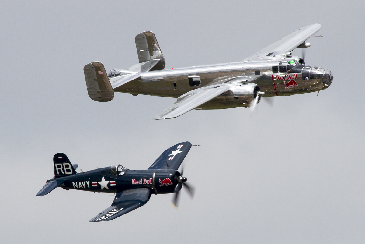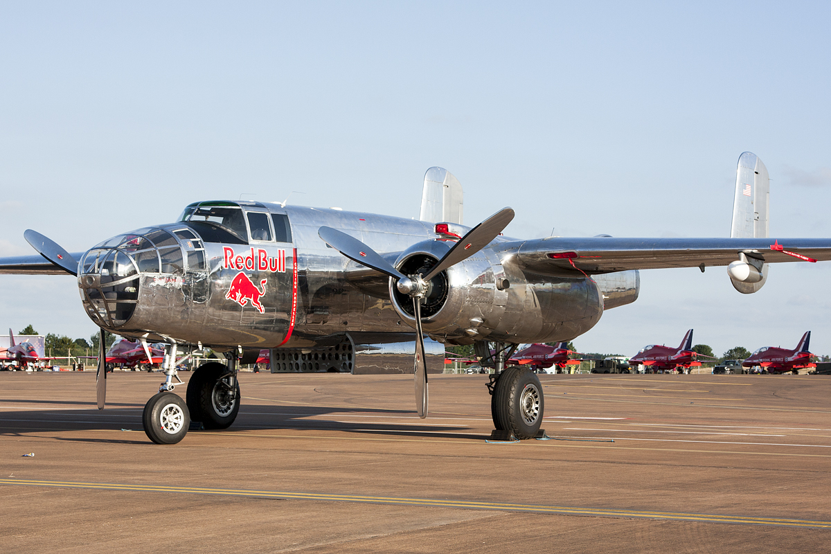 Based in Salzburg Airport Austria, a North American B-25J Mitchell replaced the expected P-38 from The Flying Bulls. Its attendance was a UK display début for the type, and coupled with the Bulls’ F4U-4 Corsair the pair looked fantastic, especially in their blue skies slot on Sunday. Having supported Duxford’s Flying Legends airshow for the last few years, it was good to see the B-25J at RIAT – and the display to Hans Zimmer’s soundtrack from Pearl Harbor was a well thought out composition.