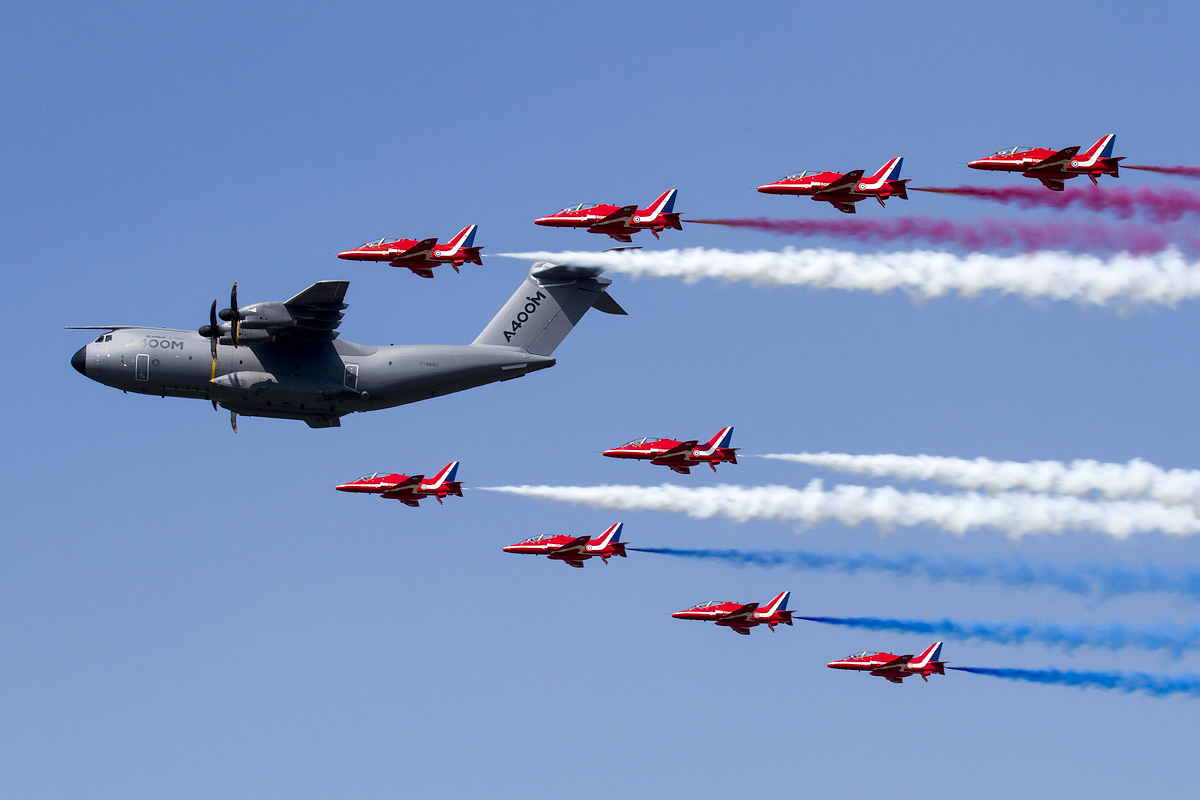 Sundays treat from France was the Royal Air Force’s future transport aircraft – the Airbus A400M (which replaced the A380 for a formation flypast with the Red Arrows). Following its very impressive display which incorporated some extremely versatile maneuvers the A400M was awarded the Best Flying Demonstration by an overseas participant. The ‘Atlas’ is expected to be delivered to near-by RAF Brize Norton, Oxfordshire in 2014 and will replace the C-130K variant whilst accompanying the C-17A and C-130J fleet which is already in operation.