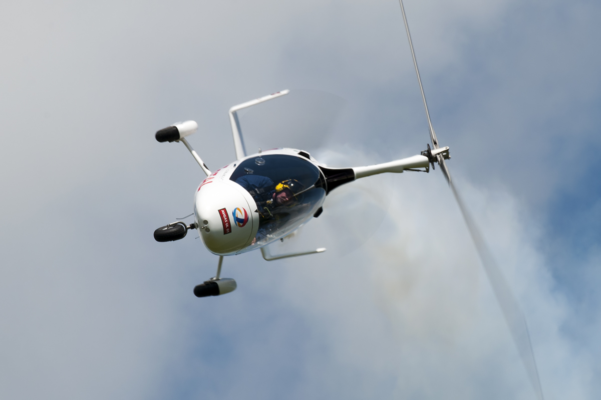 Peter Davis served up another exemplary display in his small lightweight 2 seat enclosed RotorSport Calidus Gyro Copter. Fitted with a Rotax 914 (115hp) engine the aircraft has a top speed of 120mph and is highly manoeuvrable. With the addition of a smoke generator it really makes the display stand out and also shows the agility of the aircraft as it turns on a sixpence.