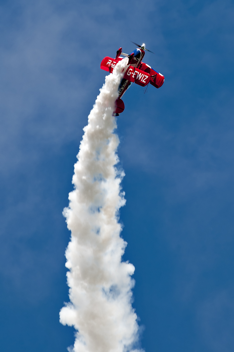 The day’s final offering in the Worcestershire skies was the AeroSuperBatics Breitling WingWalkers. Flying in from their base at Rendcomb Airfield in Gloucestershire the WingWalkers brought two of their four Boeing Super Stearman aircraft. With the updated 450 horsepower engines, the rasping noise they make certainly grabs the attention as they perform daring mirror passes and opposition crosses, each with a gorgeous young lady atop of their aircraft. Certainly a crowd favourite judging by the reaction as they departed.