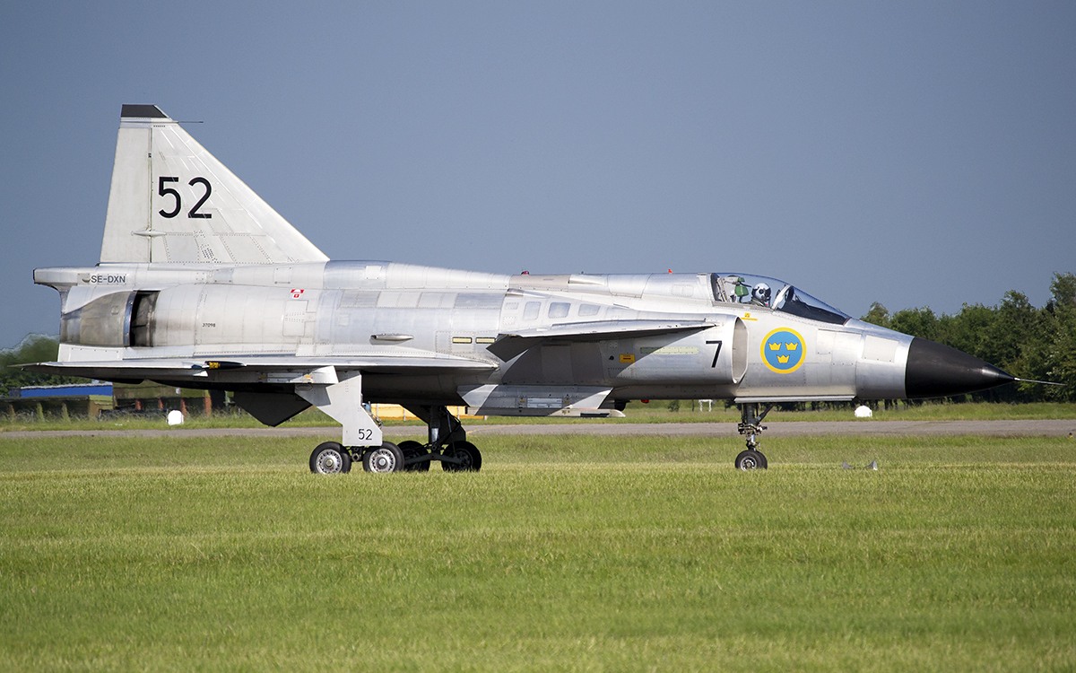 For many enthusiast though, the real draw was the only English appearance of three jets from the Swedish Air Force Historic Flight. Comprising the SAAB SK60 (SE-DXG), J-29 Tunnan (SE-DXR) and AJS-37 Viggen (SE-DXN). These aircraft are very rare to see around the UK mainland and, with the Viggen only being restored to flight last year, possibly the first time for many to see one flying. On the Saturday both the Tunnan and Viggen suffered technical snags that delayed their displays but luckily these were quickly overcome to ensure they could participate. The SK60 and Tunnan displays were graceful whilst still showing the ability of the aircraft but it was the highly anticipated Viggen that wowed the crowds even though a lot of the public may not have been previously aware of the aircraft type. Despite these aircraft being one of the major headlines of the show, it was a real shame that they were kept at the far side of the airfield well out of the way of public view. Given the Vulcan was on static display and towed out ready for its display it has to be asked why the same couldn’t have been done for the Swedish or why they could not have been positioned on the old cross runway where the Thunderbirds were kept during their visit in 2011.