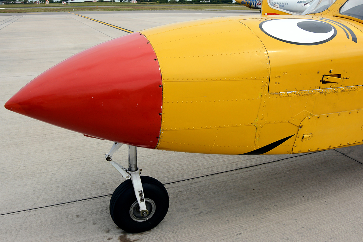Since being delivered to the Airline JOEY has worn a number of different paint schemes with the adoption of a red nose and smiley face added in approximately 1995. As well as for marketing purposes, the aircraft has proven to be an ideal solution for providing a transport link between the Channel Islands as well as to the mainland including destinations such as Southampton and Dinard/St.Marlo.