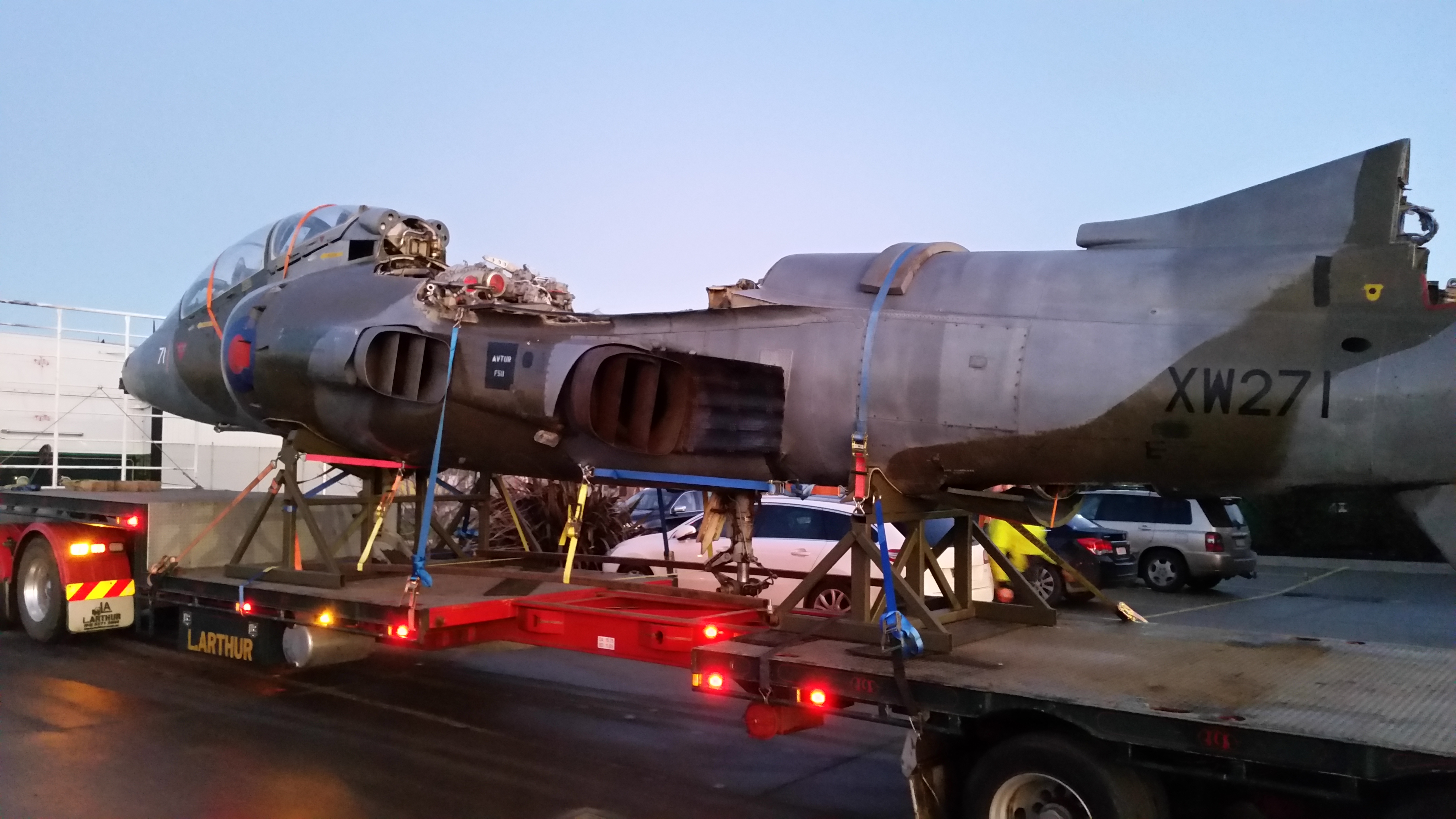 Having squeezed the wing section into the shipping container, it took the AVT team a considerable amount of time to extract it, as it was set at 45 degrees. It took a crane, a car winch and a whole day to remove the wing, with the only damage incurred being a slightly bent aerial.