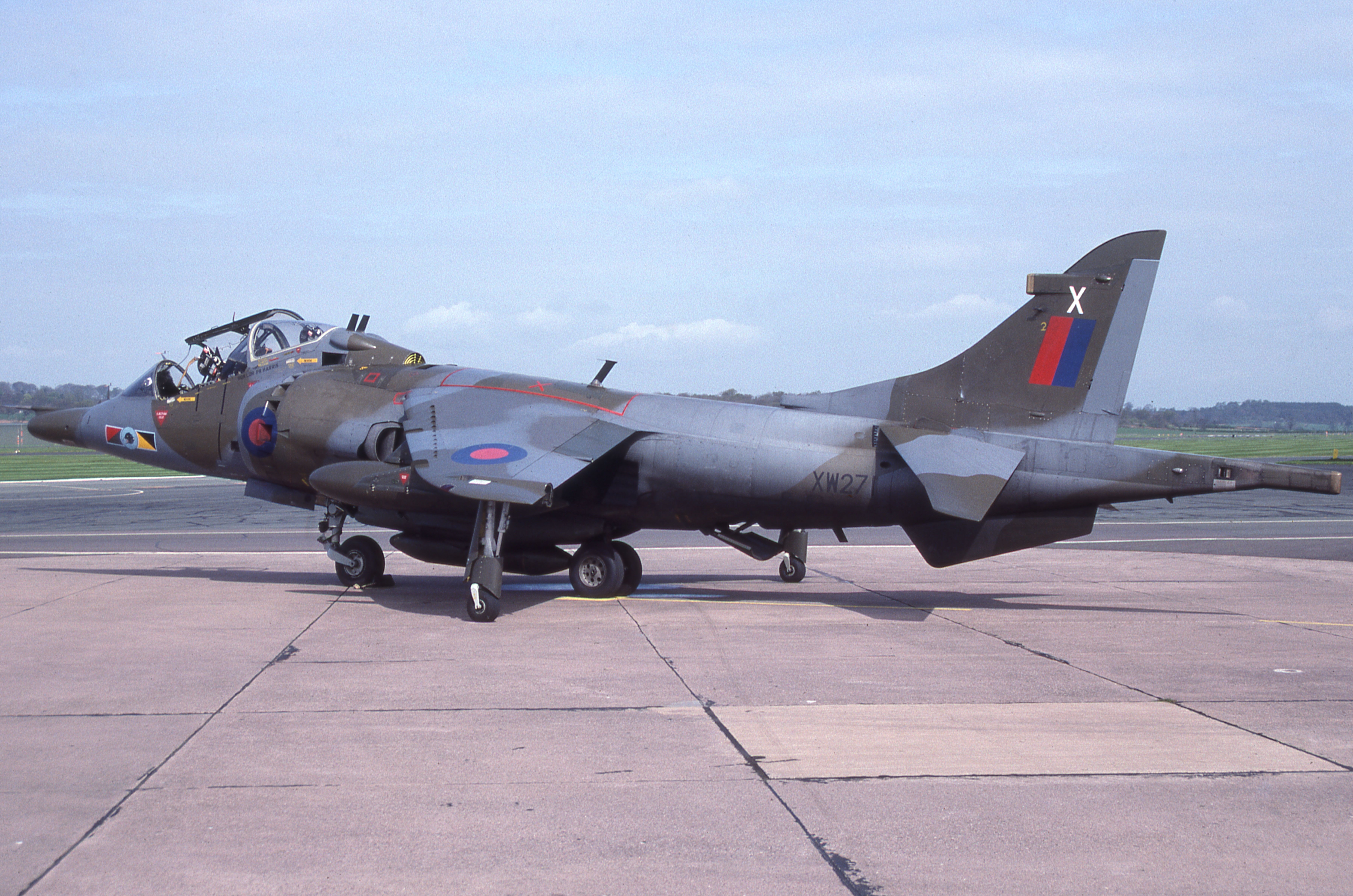 Prior to receiving their first two seat Harrier, 1(F) Sqn retained the use of a Hawker Hunter T7 – namely XL601. The T7 was used as an instrument rating, standards and continuation training aircraft and was relinquished when the unit received its first and only T2 Harrier, XW271.