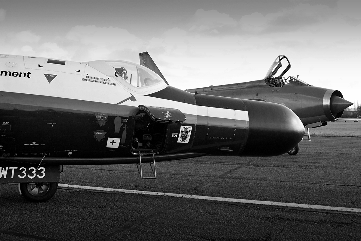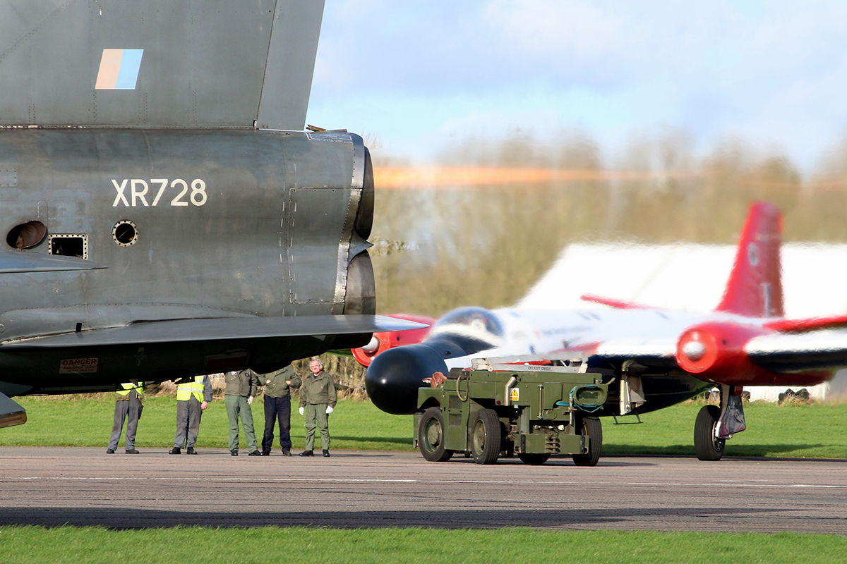 Backtracking to her awaiting crowd, many of those gathered couldn’t have failed to notice another British aviation icon being towed towards the runway – English Electric Lightning F.6 XR728/JS of the Lightning Preservation Group (LPG). Making it a truly English Electric affair, the LPG carried out both a static run (including lighting both ‘burners) and a brief fast taxi in the capable hands of John Ward. It is always a pleasure to see this once guardian of the UK’s skies come to life and roar again unlike many of their stablemates that have sadly been reduced to mere memories and nostalgic pictures. Incredibly, the Lighting and the Canberra were both the brainchild of W.E.W ‘Teddy’ Petter and Roland Beamont flew both prototypes for the first time as well as going on to fly the initial test programmes for each. Amazingly, the very same man flew both WT333 and XR728 during their very first flights from the same runway albeit it eleven years apart – the late, famed test pilot Desmond de Villiers. As both ‘Treble Three’ and XR728 sat next to one another for a photoshoot with both crews and ‘Bee’s’ family, it was quite clear to see the radical departures from the tried and tested designs of the time that the Lightning used.