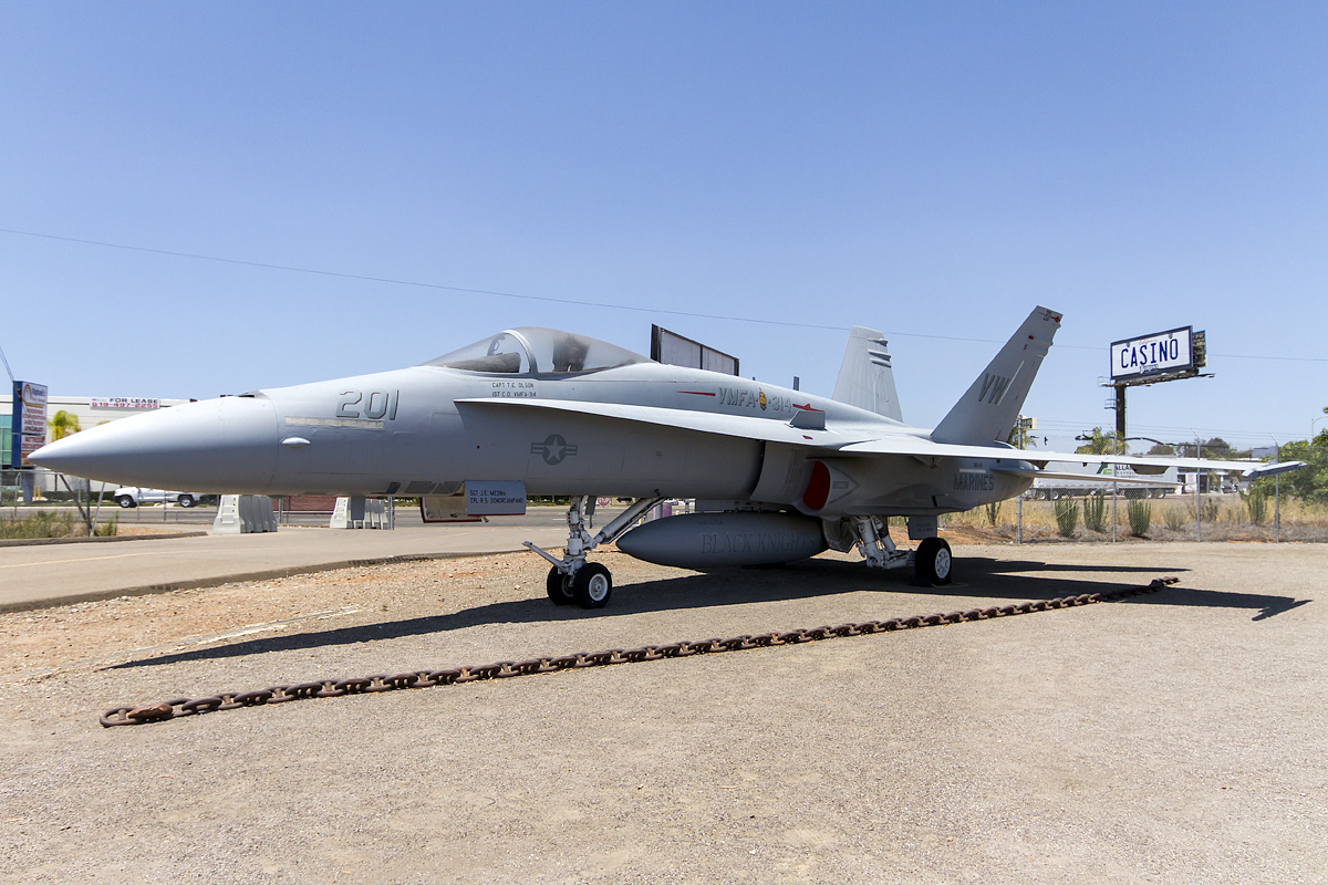 Whilst the museum is technically on the grounds of the airbase itself its location is a considerable distance from the runway. Therefore, whilst the noise of based F-18, KC-130 and MV-22 can be regularly heard, any sight of them is normally very much in the distance.