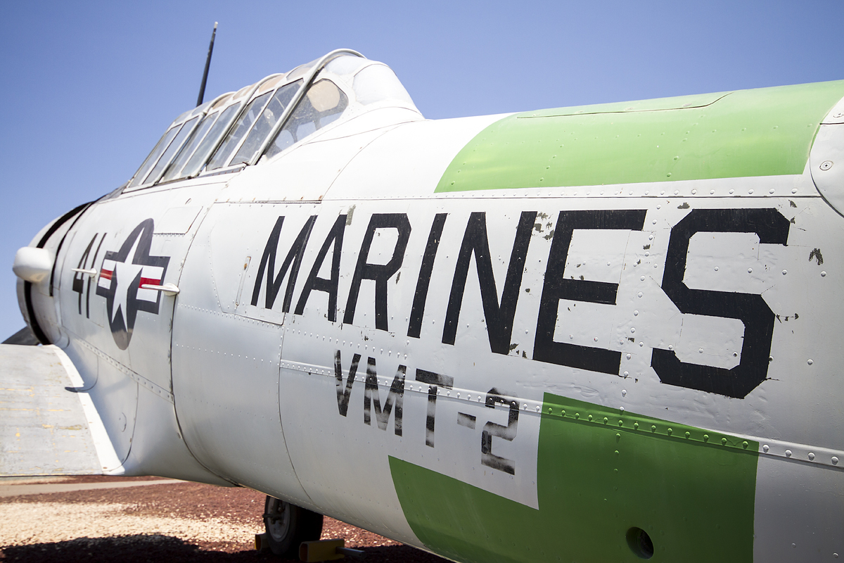 Mikoyan-Gurevich Mig-15 (80172) – The only aircraft in the collection that is built outside of the US, the Mig-15 may not have been a Marine Corps aircraft but represents an important era of corps aviation during the Korean War. This particular example was originally Russian built and was damaged in combat during that war before it was repaired in China and re-designated a J-1. It was acquired for the museum by US Army Silver Star Korean War veteran Warren Sessler from the Chinese Aviation Museum near Beijing in 1988 and now sits alongside one of its wartime adversaries in the form of a Douglas F3D Skyknight (124630).