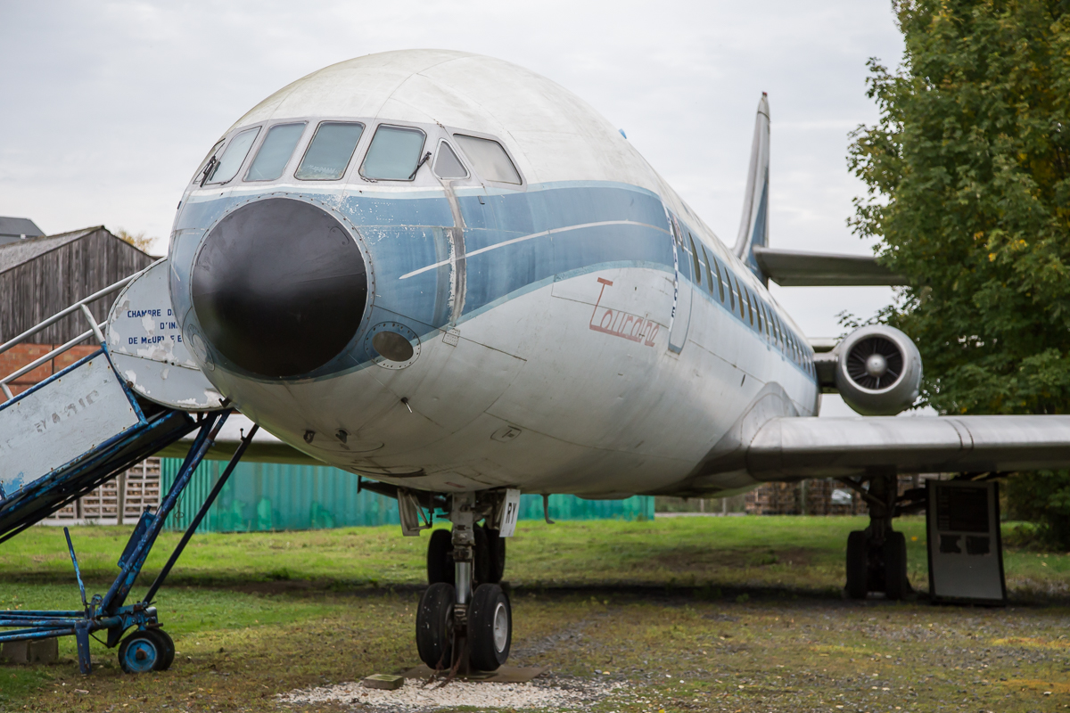 The largest aircraft in the collection is a Sud Aviation Caravelle III (F-BHRY). Still displayed in its Air France colours, it is one of the only aircraft where access to the interior is permanently possible giving a chance not only to see the retro style cabin but also the remarkably complete cockpit.