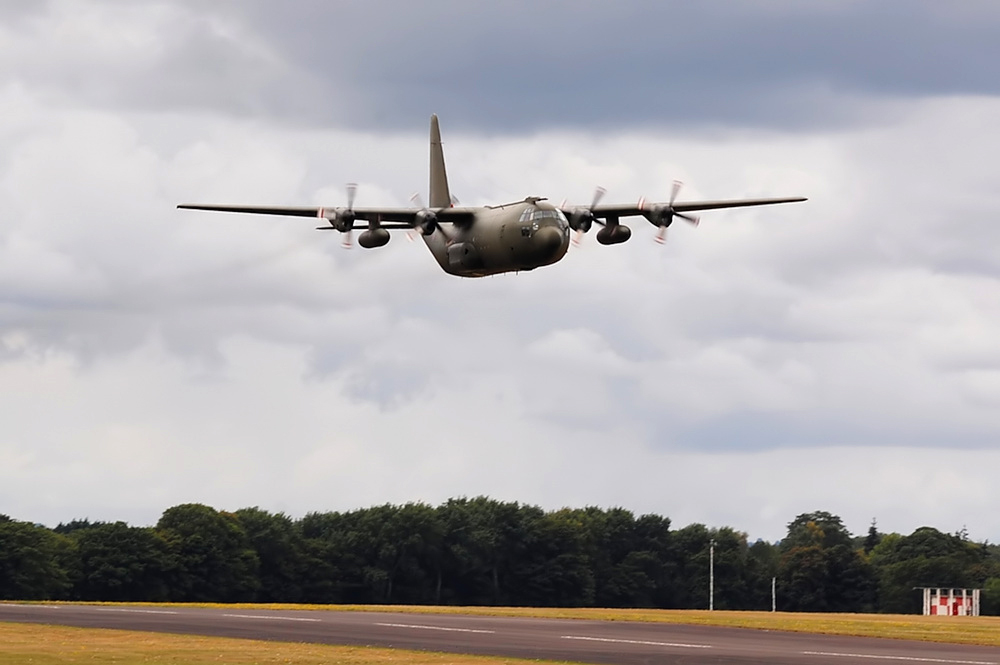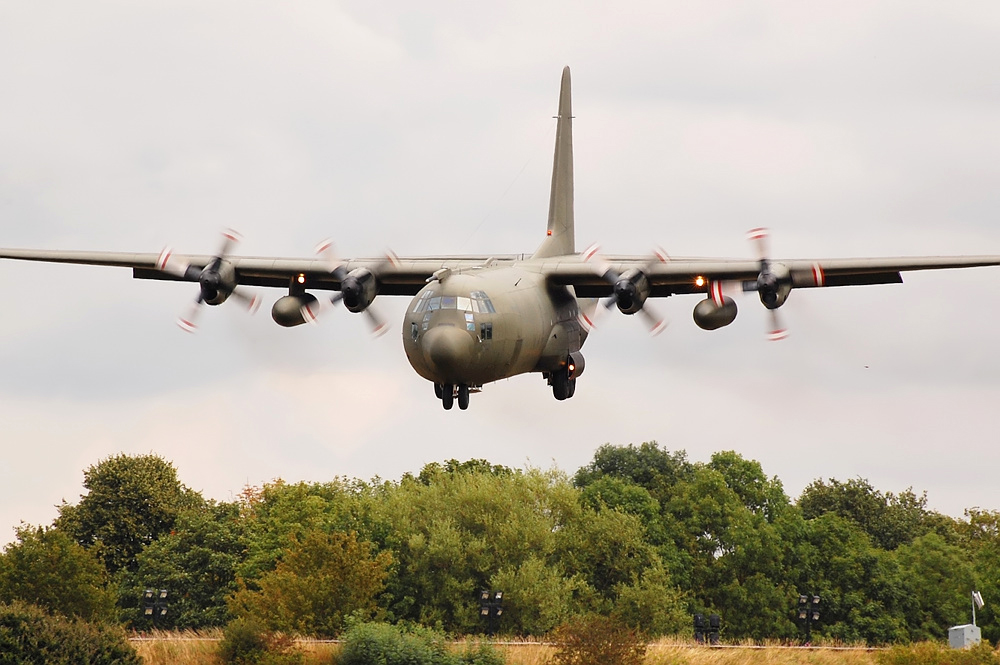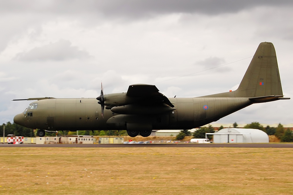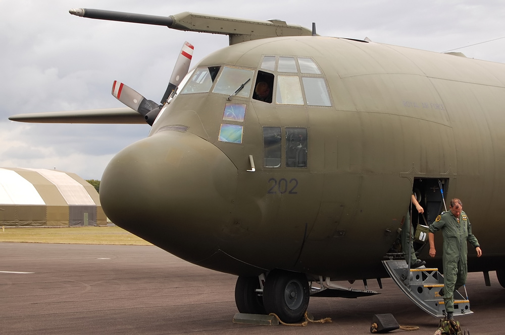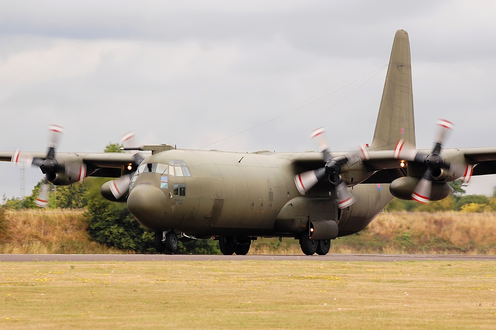 The C130 is a venerable workhorse, being employed by numerous Air Forces and civilian firms (as the Lockheed L-100 Hercules) throughout the globe. She was introduced to service in 1957, with the United States Air Force, following a first flight in 1954. A tribute to the hardiness and design of this aircraft, it has been redeveloped numerous times, with the latest C130J “Super” Hercules also being present in the RAF fleet.