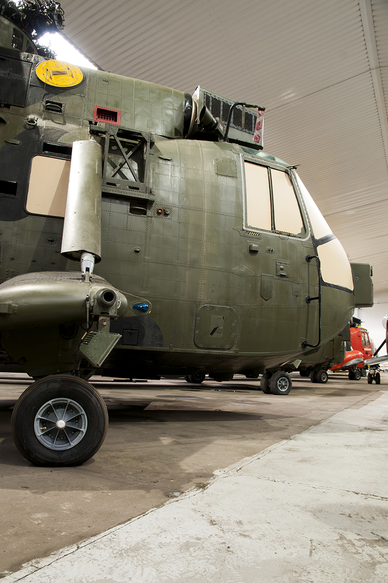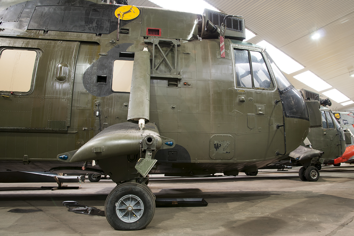 The HC4, crewed by two pilots and a single aircrewman, was a very capable aircraft with the ability to transport up to 27 fully laden troops, albeit a little cosy, or 6,000 lbs of stores internally. It could also lift 2.5 tonnes underslung loads, including such items as Land Rovers or 105mm Howitzer guns. Fitted with two Rolls Royce Gnome 1400-1 engines producing 1,400 Shaft Horsepower each, the Sea King HC4 could cruise at 129mph at sea level and had a range of 246 miles whilst fully laden.