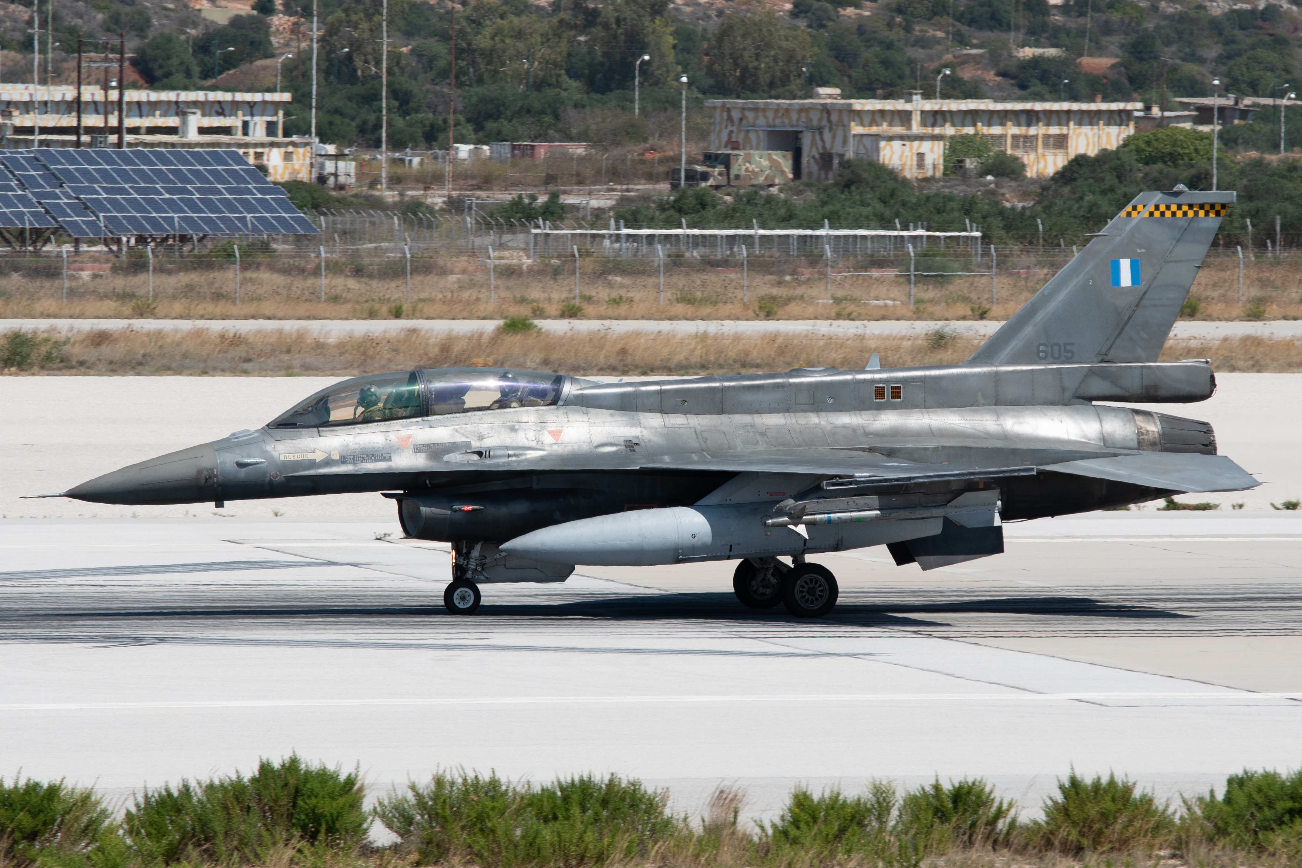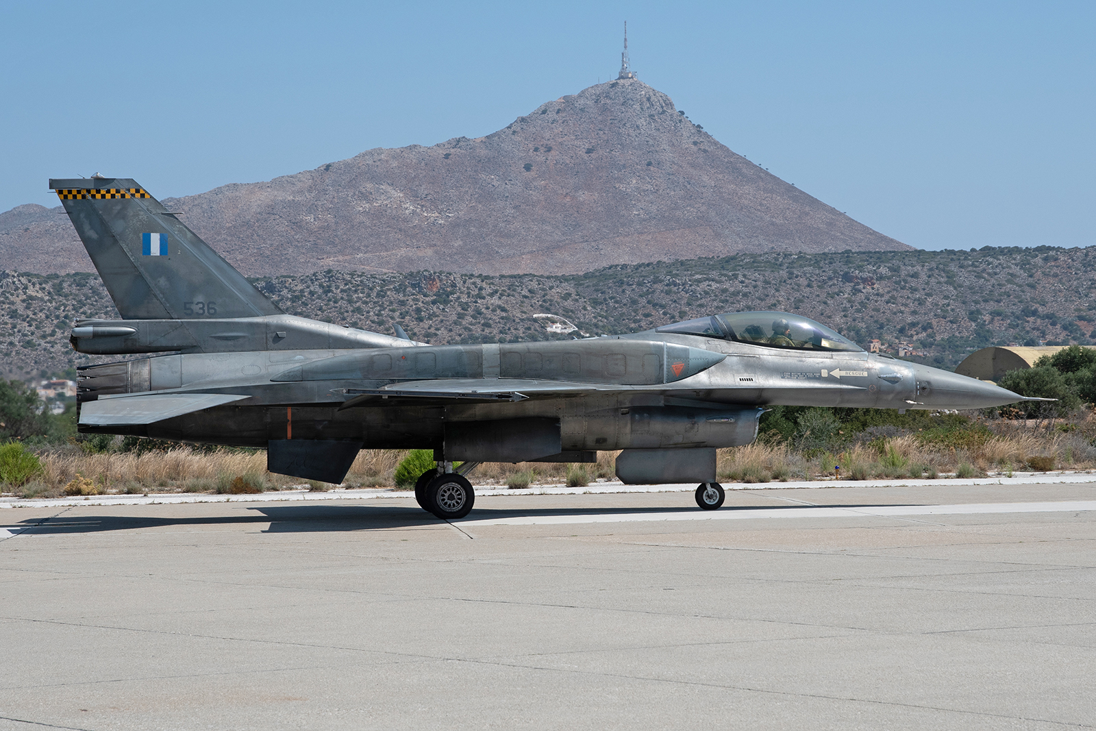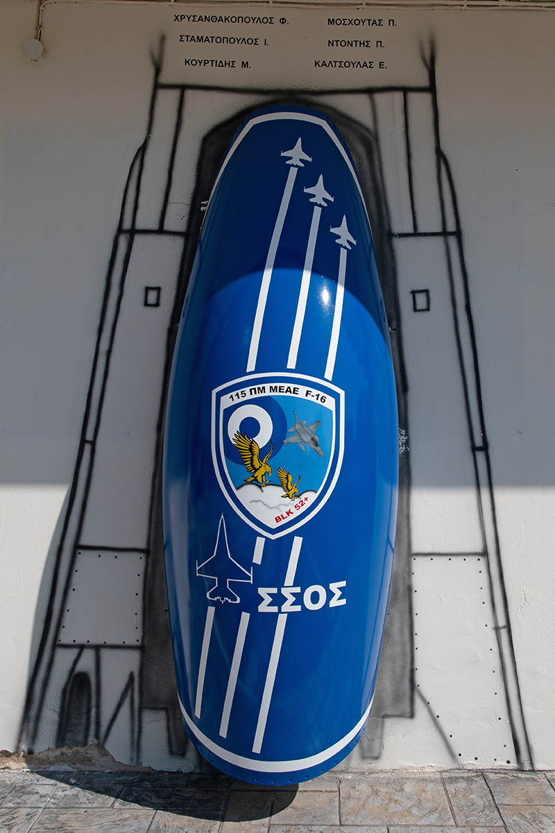340 Mira, commanded by Lieutenant Colonel(P) Ioannis Markakis, occupy the Hardened Aircraft Shelters (HAS) at the western end of the airfield with a primary role of precision day and night strike using a plethora of weapons including ground munitions such as Paveway Laser Guided Bombs and AGM-65 Mavericks in the air-to-ground aspect along with Sidwinders/ AIM-2000 IRIS-T and AMRAAM air-to-air missiles for air defence.