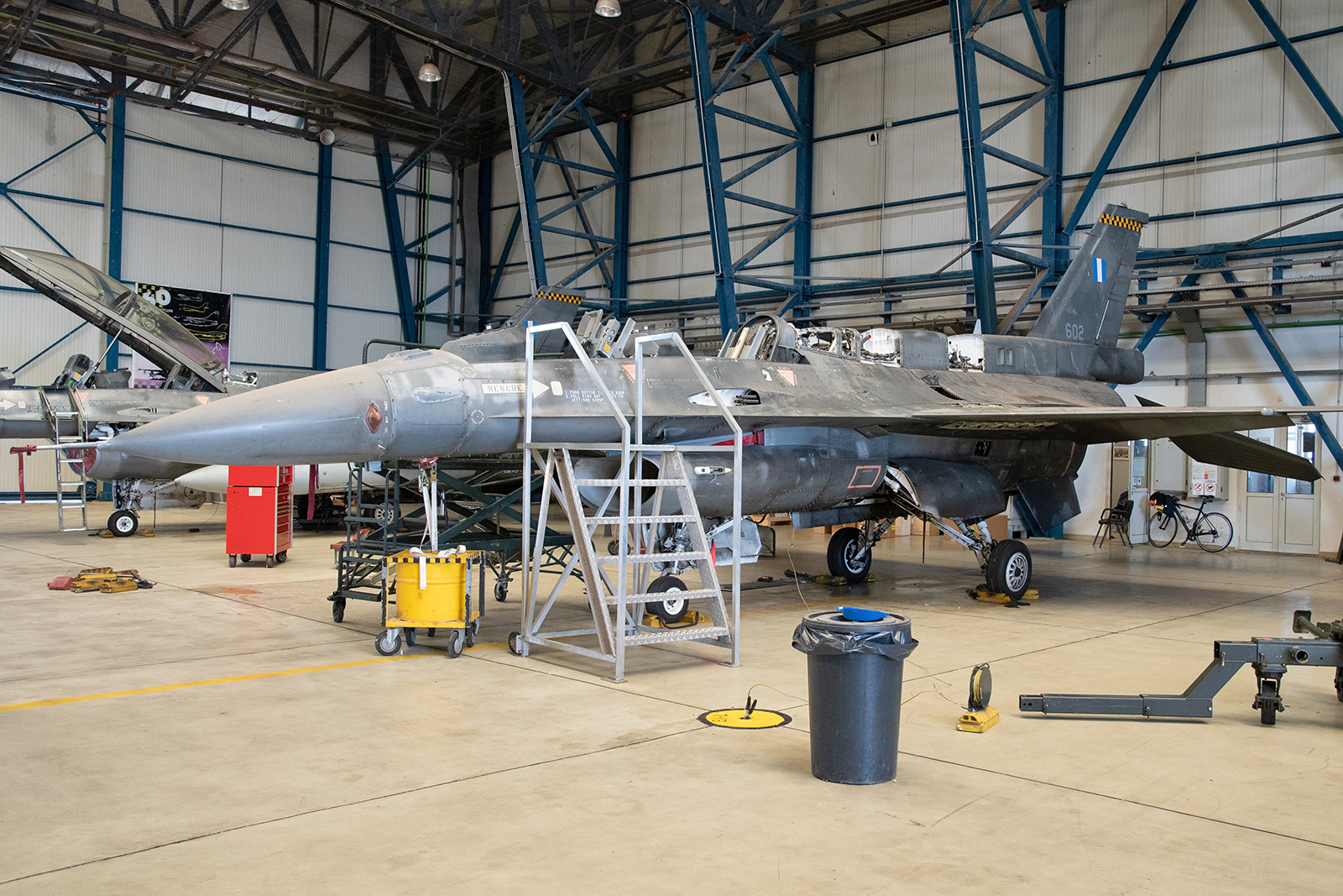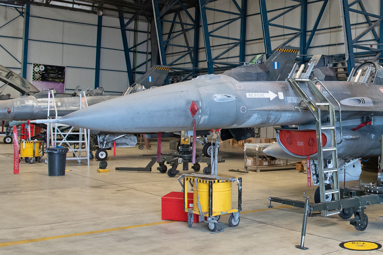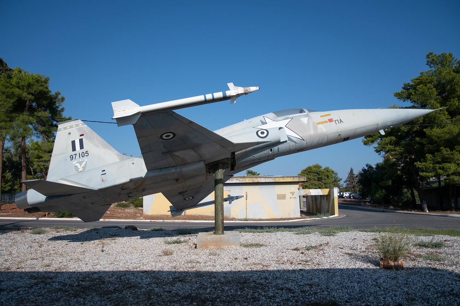 340 Mira, commanded by Lieutenant Colonel(P) Ioannis Markakis, occupy the Hardened Aircraft Shelters (HAS) at the western end of the airfield with a primary role of precision day and night strike using a plethora of weapons including ground munitions such as Paveway Laser Guided Bombs and AGM-65 Mavericks in the air-to-ground aspect along with Sidwinders/ AIM-2000 IRIS-T and AMRAAM air-to-air missiles for air defence.