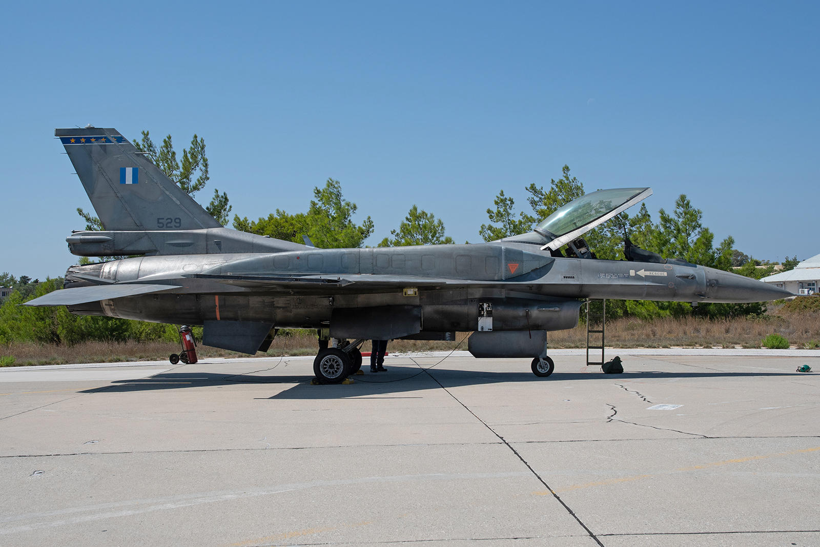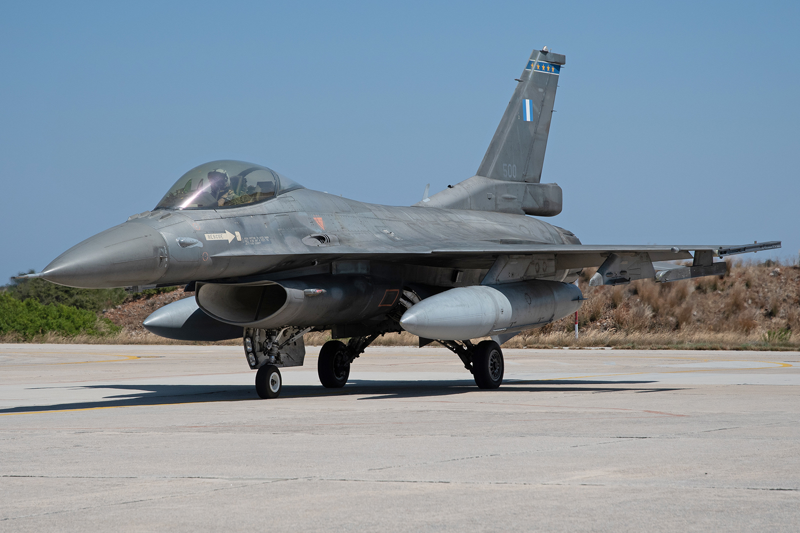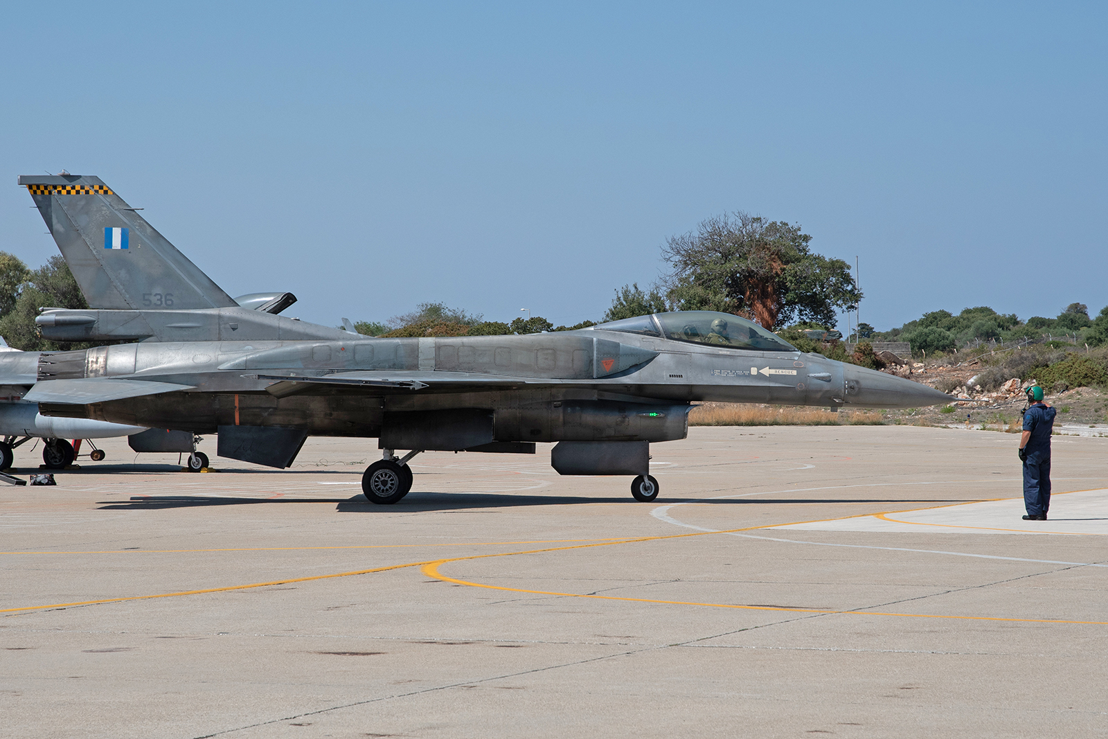 115 Combat Wing also hold Quick Reaction Alert (QRA) with two F-16s sitting on immediate readiness ready to launch and intercept any aircraft that may pose a threat – either by accident or dishonourable intentions. The aircraft, fitted with CFTs, sit in two separate HASs fully armed with two AMRAAM and two IRIS-T missiles. As well as the CFTs, the jets are fitted with two drop tanks to boost their endurance – something of major importance given the fact that the HAF does not hold dedicated tanker support. Both 340 and 343 Mira share QRA duties and have scrambled on numerous occasions to intercept Turkish aircraft testing the Greeks response times by making incursions into disputed airspace.