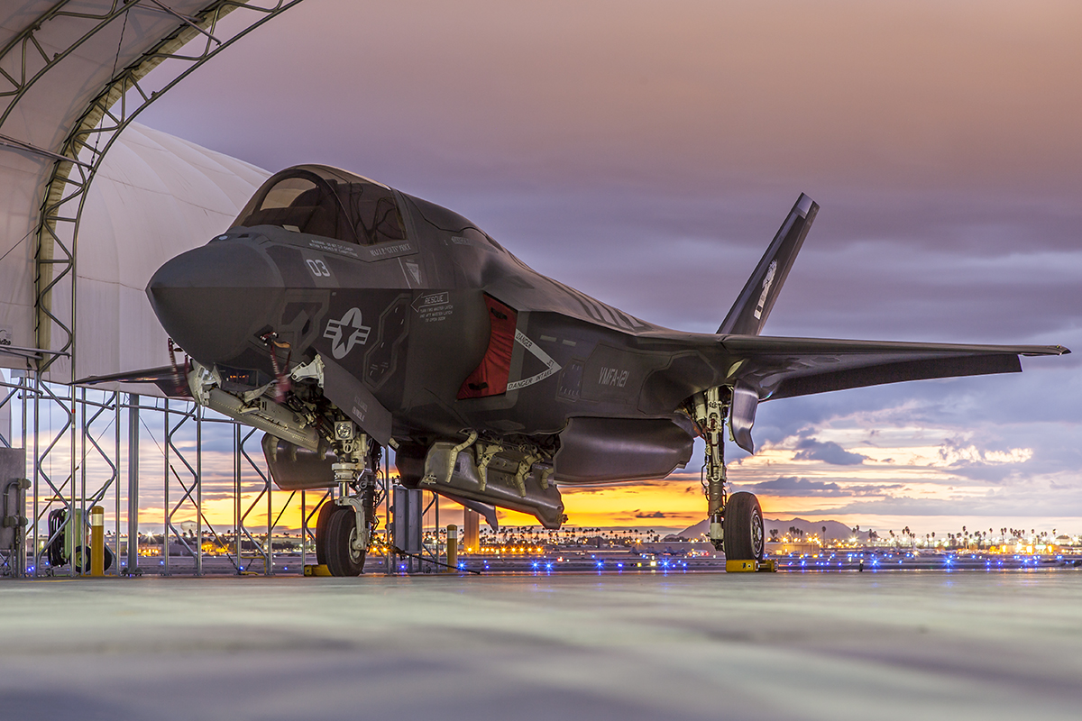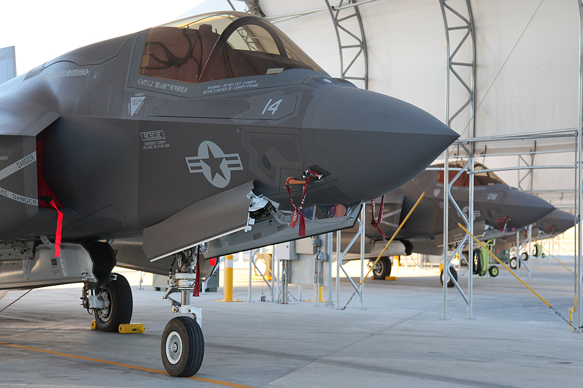 VMFA-121 received their first aircraft in November 2012 and with Marine Corps Maintainers from the 3rd Marine Air Wing, they were able to expedite the standing-up of the squadron. MCAS Yuma has four F-35 simulators to aid pilot training as well being used to evaluate tactics in a controlled environment.One of the concerns with all the data available was task saturating the pilot. The F-35 presents the information on a situational tactical display that the pilot can filter. Learning how to set up the filters and optimize the sensors depending on the type of mission is something that the pilots have been able to take forward with the help of Marine Aviation Weapons and Tactics Squadron One (MAWTS-1) who are also based at MCAS Yuma.