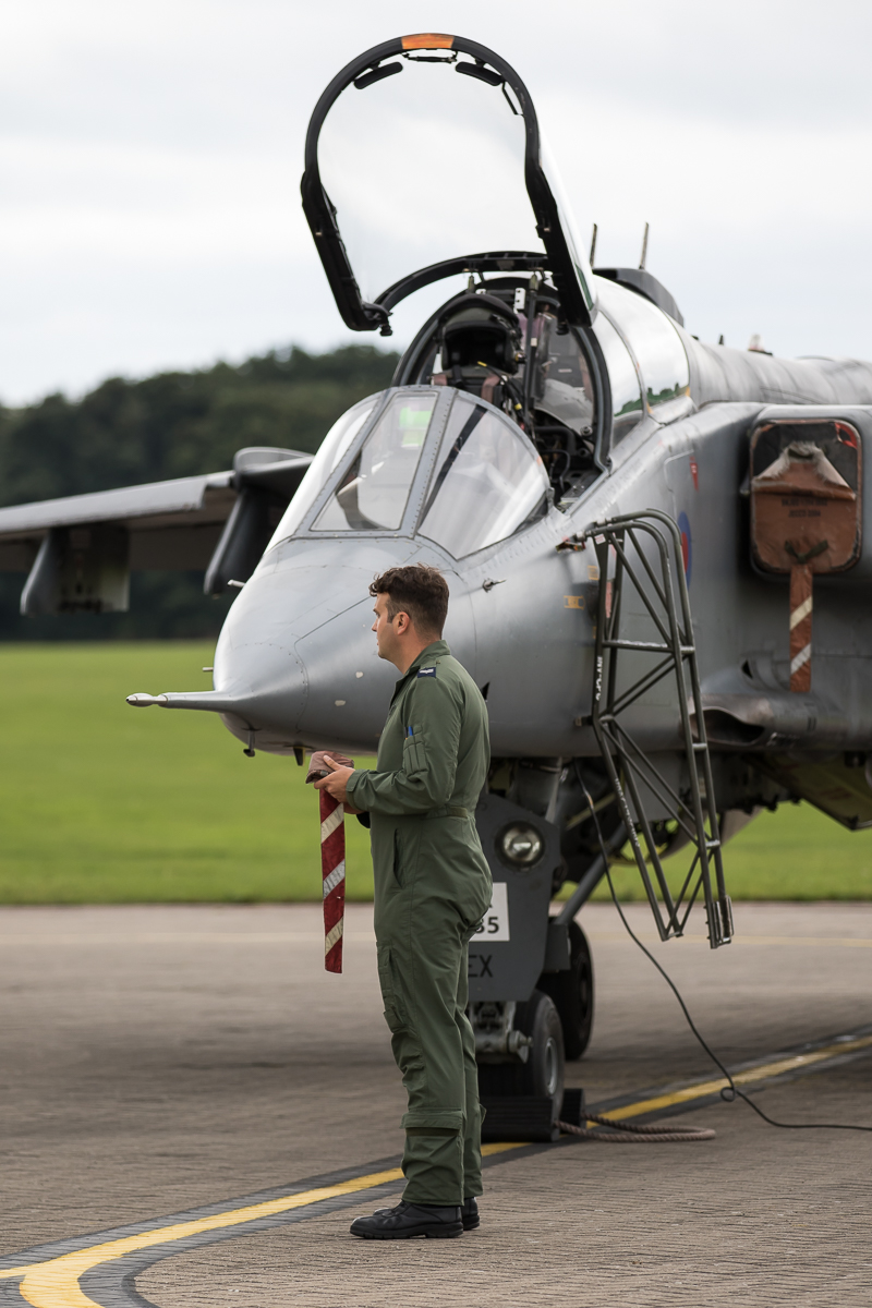 It’s not often that a chance is given nowadays to have a proper look around and inside a Jaguar, so it was great to see the two parked airframes opened up for a chance to climb inside with the ground crew more than happy to explain the various switches and controls inside. Externally a number of panels had also been opened giving an interesting peak in to the inner workings, including the type’s Aden cannon. The aircrew in control of the taxi runs were also more than happy to pose for pictures alongside the aircraft and talk to the enthusiasts about them.