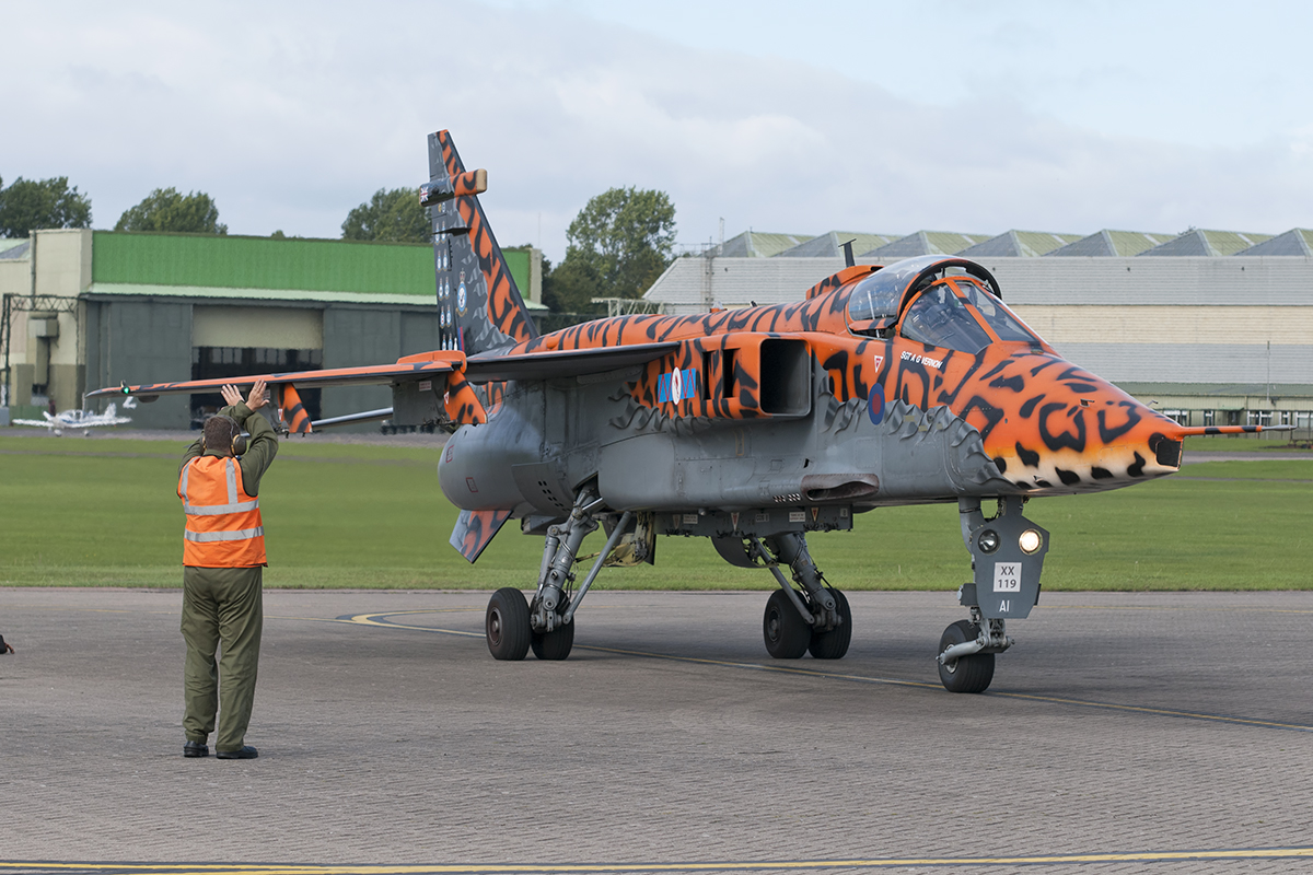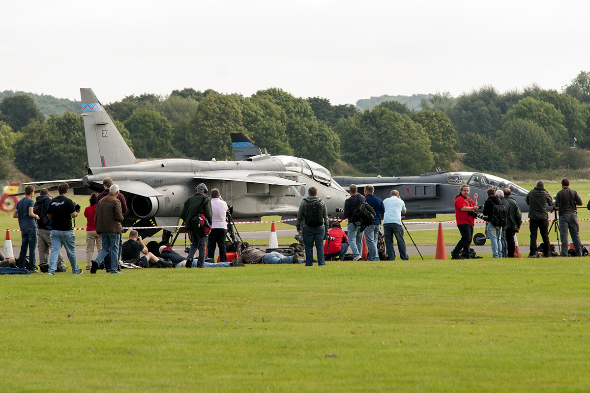 The event started with the 150 lucky ticket holders gathering within Hangar 1 of the museum – itself home to a number of interesting airframes such as Armstrong Whitworth Argosy C1 XP411, de Havilland Comet 1XB G-APAS and Hawker Siddeley Andover E3A XS639. After a short (but thorough) briefing on the plans for the day, it was time to head across to the designated area on the airfield where the majority of the action would take place. It was obvious from the start that thought had been put into the positioning of aircraft and the requirements for photographers. Those who have attended Cosford’s annual airshow will be more than aware that for the majority of the day the crowd line shoots into the sun and whilst many may have thought similar could happen for the Jaguar event, it was great to see a designated area that favoured the sun – when it appeared! With such a number of enthusiasts gathered, there were also initial concerns over space available however, that had also been very well thought out. Marked by cones and tape was an expansive area that allowed shooting from numerous positions in the three key areas where the day’s event would unfold – the parking dispersal, a secondary dispersal where the aircraft would perform the majority of their runs and the taxiway that linked the two. During the day it was often the case of watching people running between the areas to change angles and at no point did it ever feel cramped or was there fighting for that ‘prime’ position.
