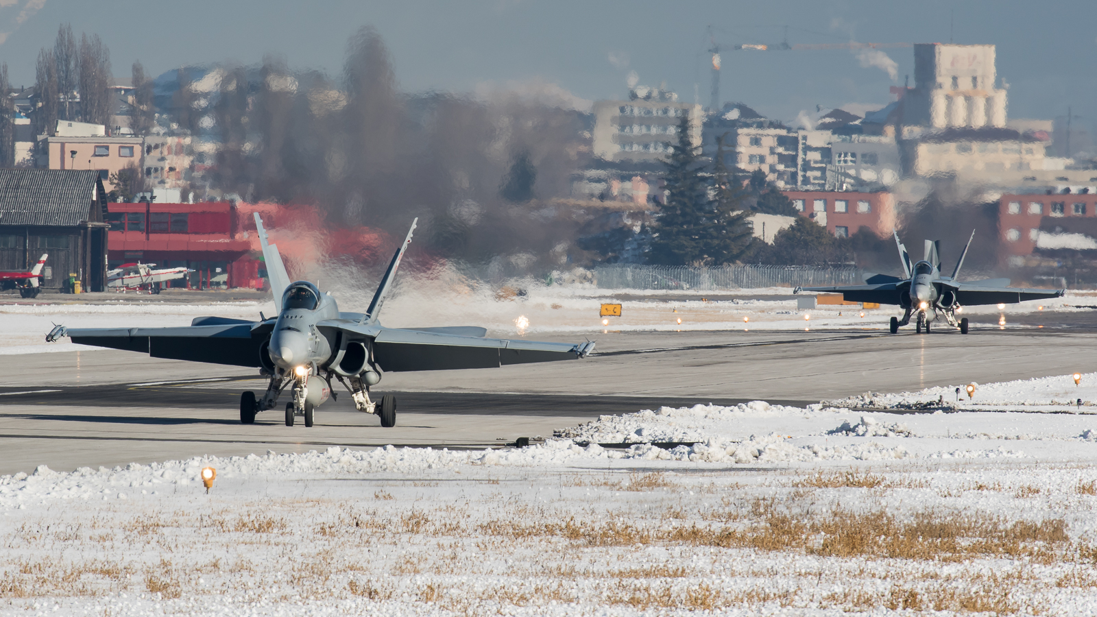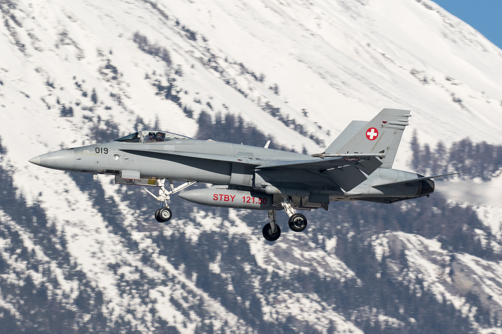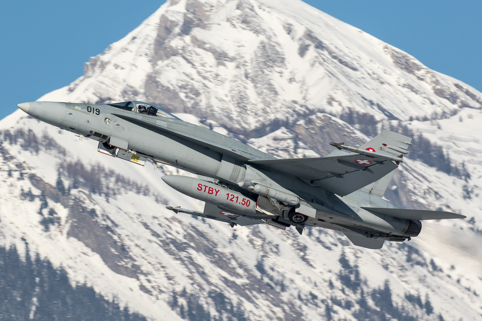 The annual World Economic Forum (WEF) meeting at Davos in Eastern Switzerland attracts many world leaders and important visitors to it and, as can be imagined, requires a high level of security – especially in these times of heightened alert states not only in Europe but around the world. In order to protect the skies above the conference, F/A-18C Hornets of the Swiss Air Force deployed to Flugplatzkommando 14 at Sion Airport to carry out air defence sorties above the conference.