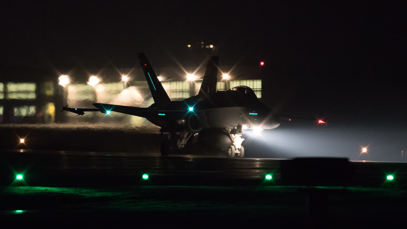 Operating from just before 7am until around 11pm, the Hornets rotating in pairs throughout the day to provide constant coverage above the conference. The pattern of aircraft movements remained broadly the same every day with three pairs forming the basis of missions, operating from a series of hangars on the southwestern area of the airfield. Once the first pair had launched, the second pair launched around 75 minutes later to relieve them. With the first pair returning back 30 minutes after being relieved, the third pair would launch after another 45 minutes to relieve the second pair. After refuelling the first pair would launch once more to take over from the third pair. This tempo saw each pairing in the air for just over 2 hours at a time with a quick turnaround required on the jets before they were sent out again. Throughout the week, individual aircraft were rotated around while spares located in other hangars allowed a spread of airframe hours and longer maintenance tasks to take place when needed.
