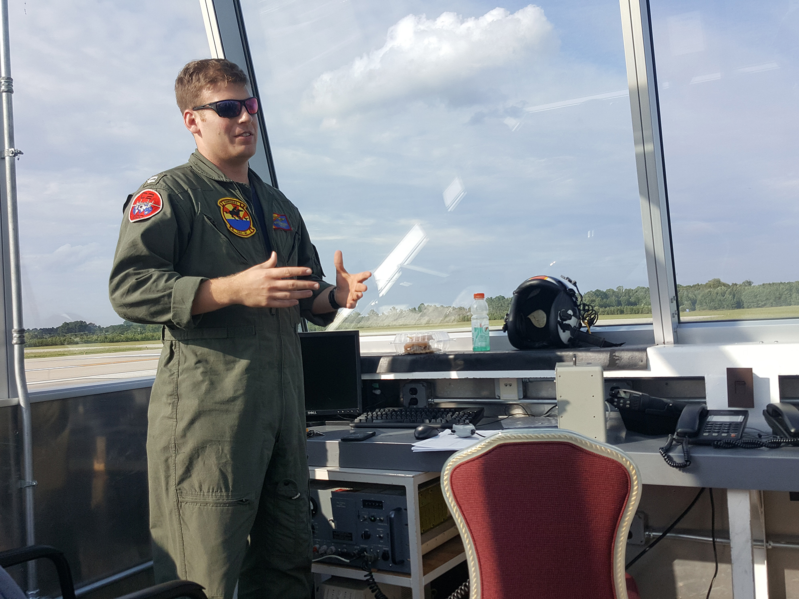Flown into a ‘box’, FCLPs make use of marked carrier box on the runway at NALF Fentress by flying approaches, landings and ‘wave offs’ which are instigated by the Landing Signals Officer (LSO) who is normally a pilot himself, and controls the MOVLAS (Manually Operated Visual Landing Aid System) – using a handheld trigger. Sited in an air-conditioned glass box a mere 10 feet from the runway edge, the LSO can give varying signals to the aircraft on approach using the MOVLAS either letting them land or roll, or wave off and going around. Recurrency requires some six FCLPs to be carried out by each pilot.