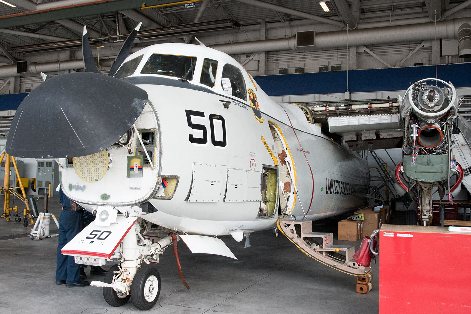 The Greyhound features a large aft cargo ramp and door, supplemented with a powered winch for the ease of hauling large and heavy cargo aboard. A cage system helps to tie down the cargo while restraining it from moving fore and aft during the carrier operations. The catastrophic results of a ‘cargo shift’ during a launch were captured on video on December 15, 1970, when the load shifted as C-2A BuNo 155120, operated by VRC-50 ‘Foo Dogs’, launched from the deck of the USS Ranger (CV-4). The cargo shifted to the rear of the aircraft, which subsequently ended up nose high causing the aeroplane to stall and crash into the sea, sadly killing all nine souls onboard.
