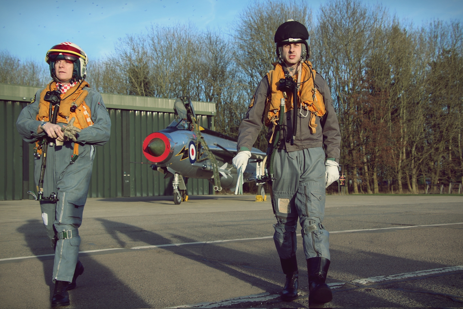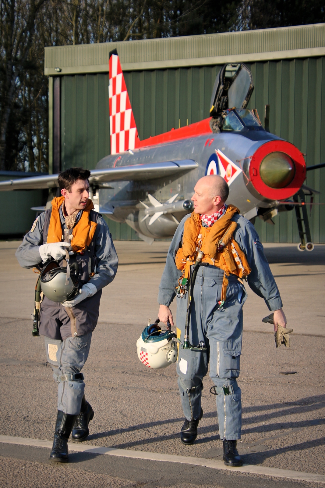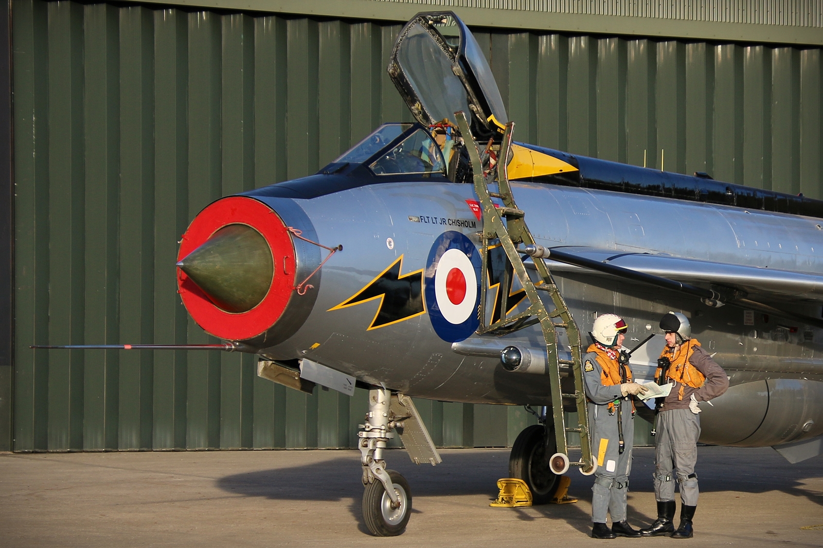 With scenes depicting both the aircraft and ‘crew’ – Jed Jaggard and Rob Petifer doing the honours – during various scenarios including walking to the jet, strapping in and for the first time posing in the cockpit, it was a refreshing to see so many people coming up with suggestions on their positioning to beat the lengthening shadows. Having donned their Lightning garb at many LPG events, both Jed and Rob are old hands at this game with many attending having previously ‘shot’ them meaning a far more relaxed atmosphere with numerous laughs thrown in. Likewise, when the lights were brought out, people advising if they were too harsh or in the wrong place for the shot being sought.