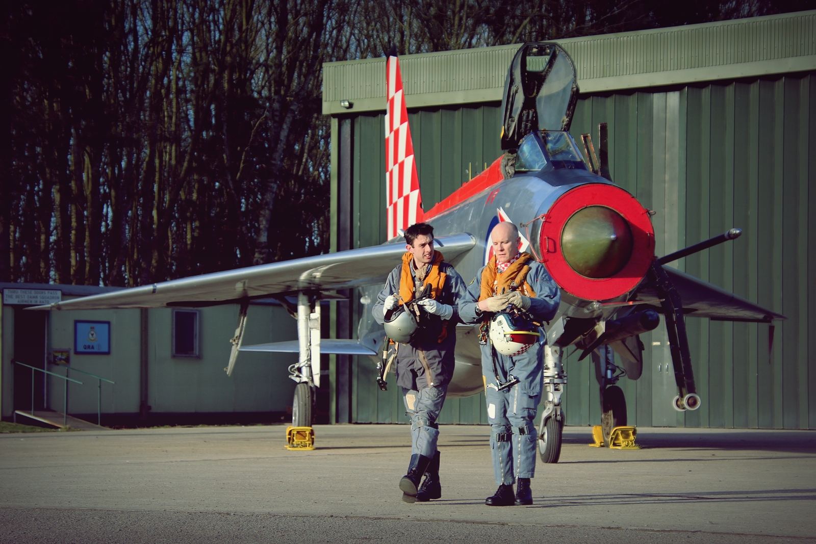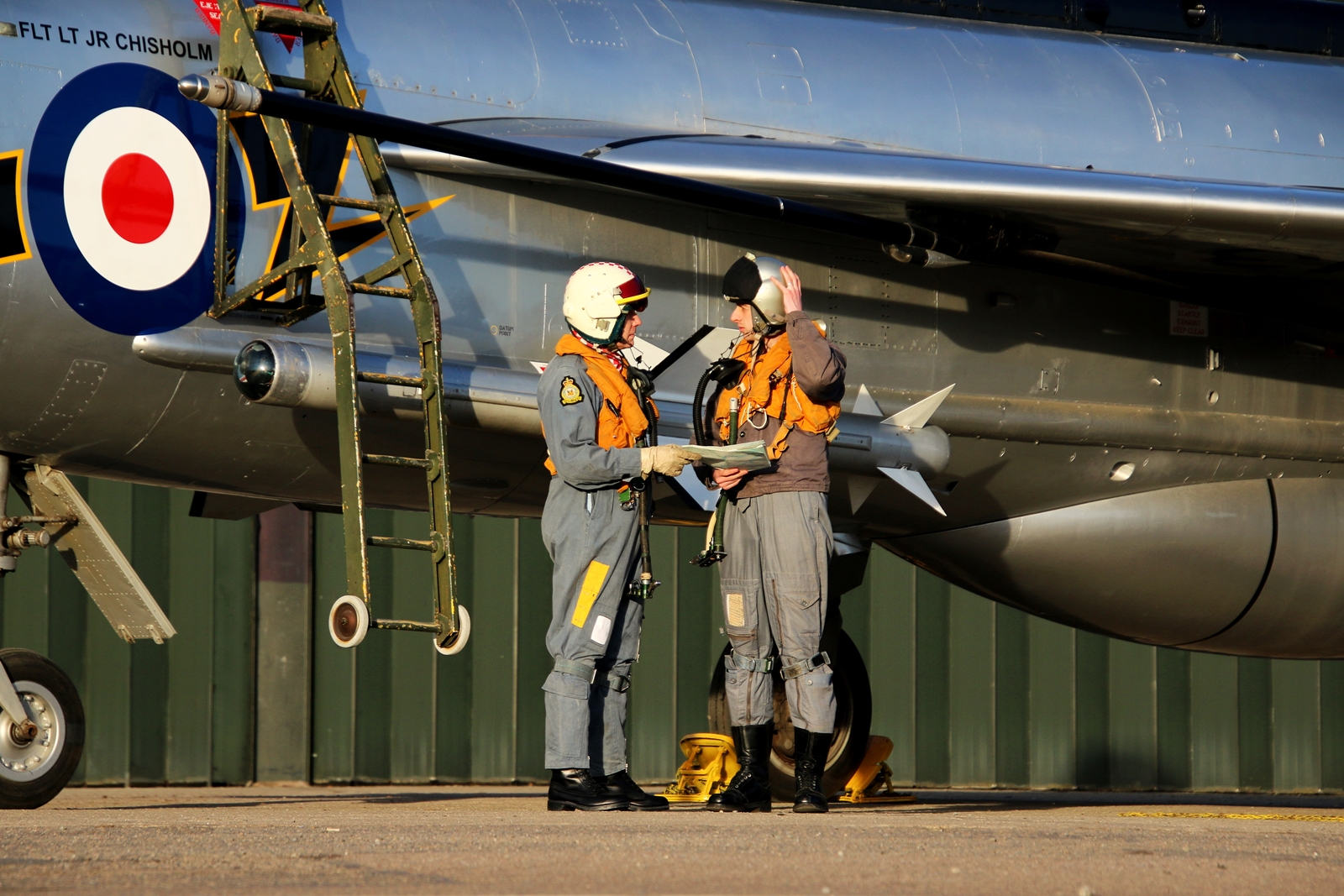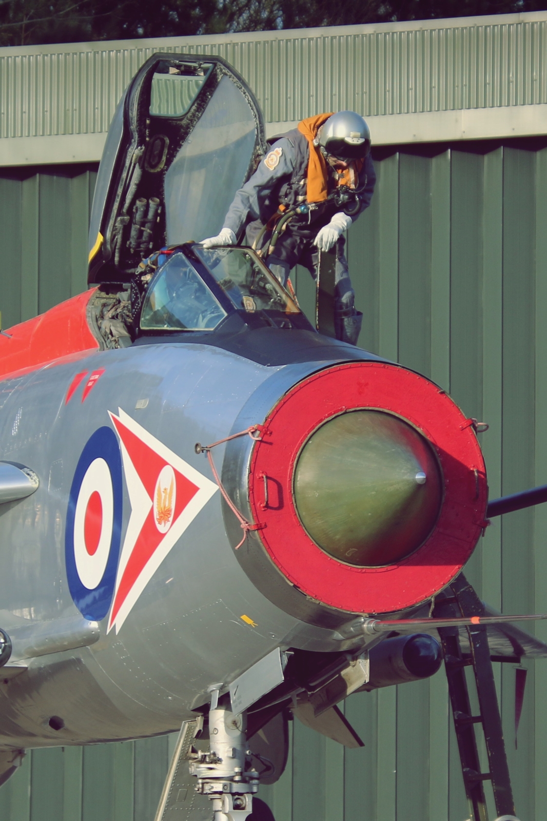 With scenes depicting both the aircraft and ‘crew’ – Jed Jaggard and Rob Petifer doing the honours – during various scenarios including walking to the jet, strapping in and for the first time posing in the cockpit, it was a refreshing to see so many people coming up with suggestions on their positioning to beat the lengthening shadows. Having donned their Lightning garb at many LPG events, both Jed and Rob are old hands at this game with many attending having previously ‘shot’ them meaning a far more relaxed atmosphere with numerous laughs thrown in. Likewise, when the lights were brought out, people advising if they were too harsh or in the wrong place for the shot being sought.